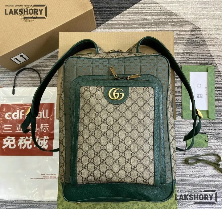 Gucci 1:1 Mirror Replica Medium backpack with Double G Green 40CM/15.7IN