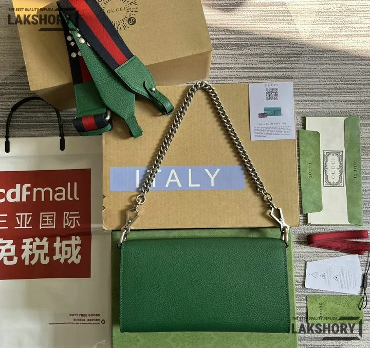 Gucci 1:1 Mirror Replica Medium Dionysus East-West Flap Green Bag 25CM/9.8IN