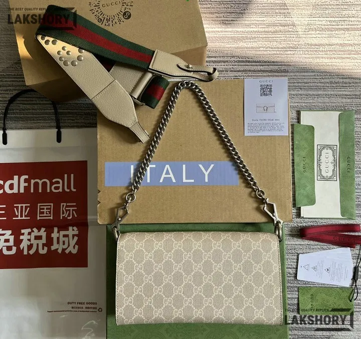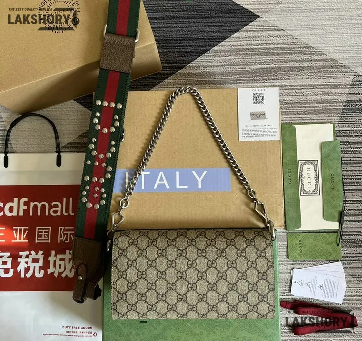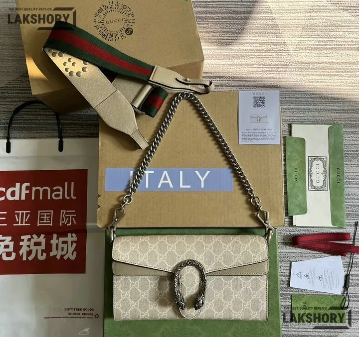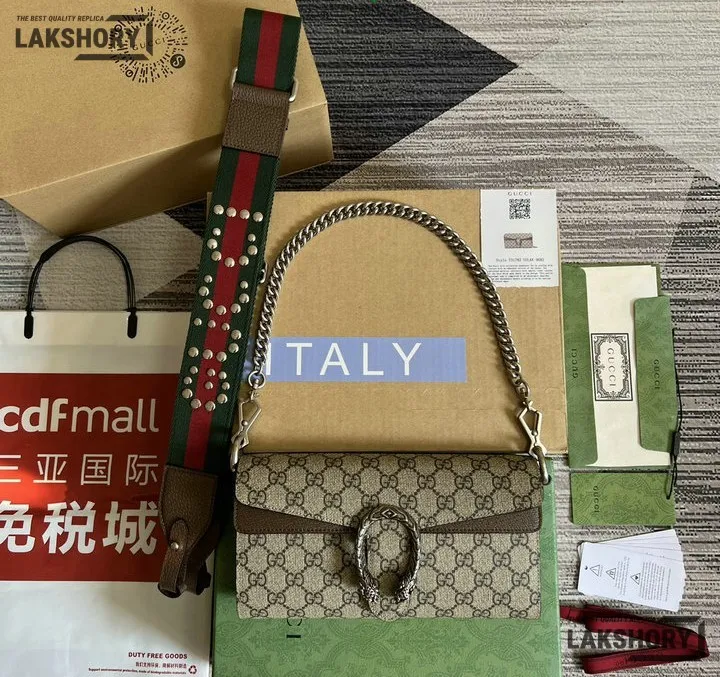 Gucci 1:1 Mirror Replica Medium Dionysus Flap Supreme Canvas Shoulder Bag 25CM/9.8IN