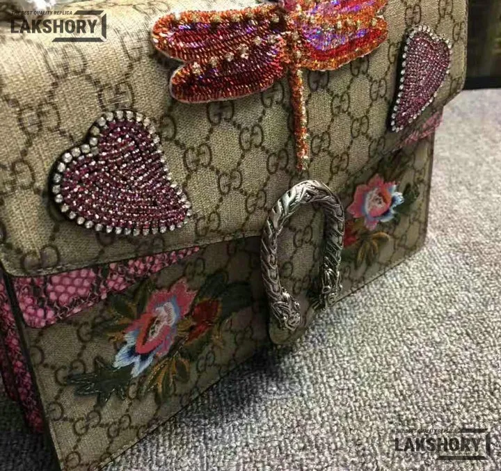 Gucci 1:1 Mirror Replica Medium Embroidered GG Supreme Dionysus Taupe 30CM/11.8IN