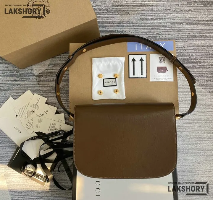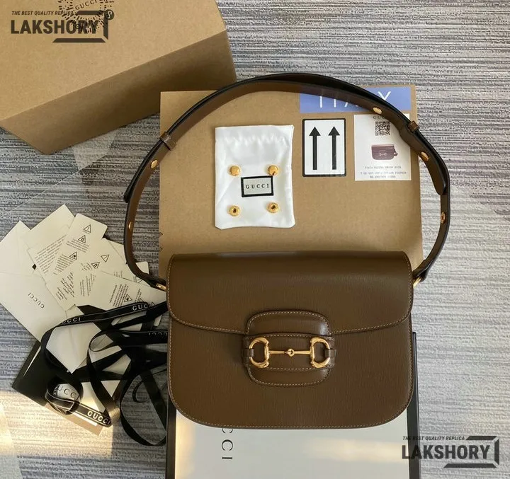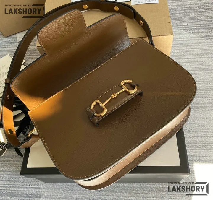 Gucci 1:1 Mirror Replica Medium Horsebit 1955 Shoulder Bag Brown 25CM/9.8IN