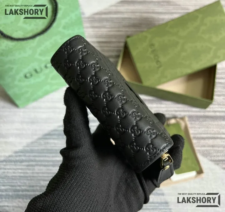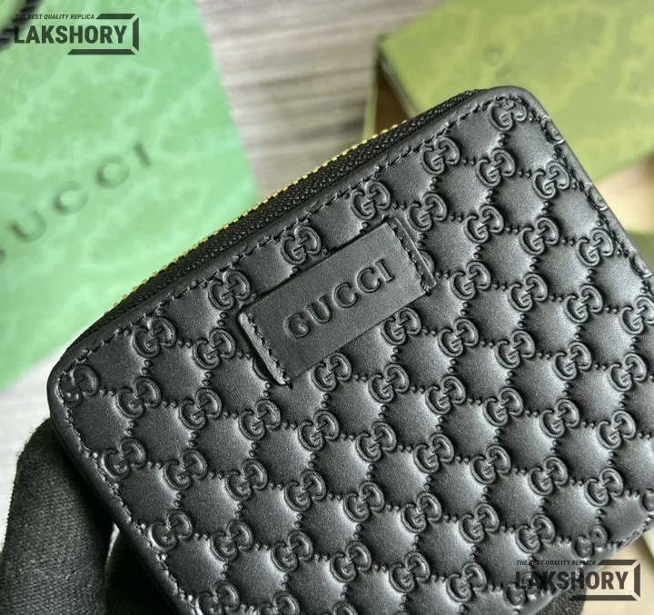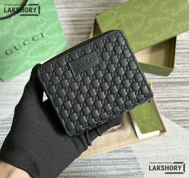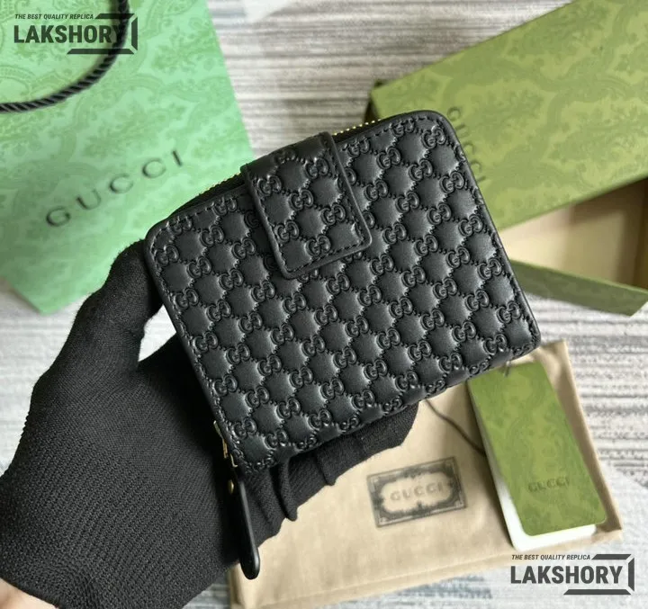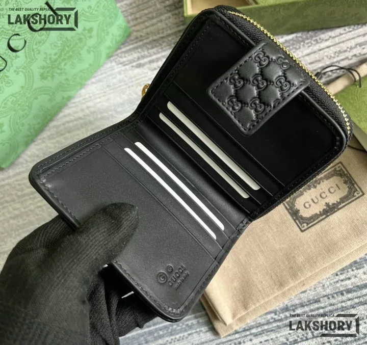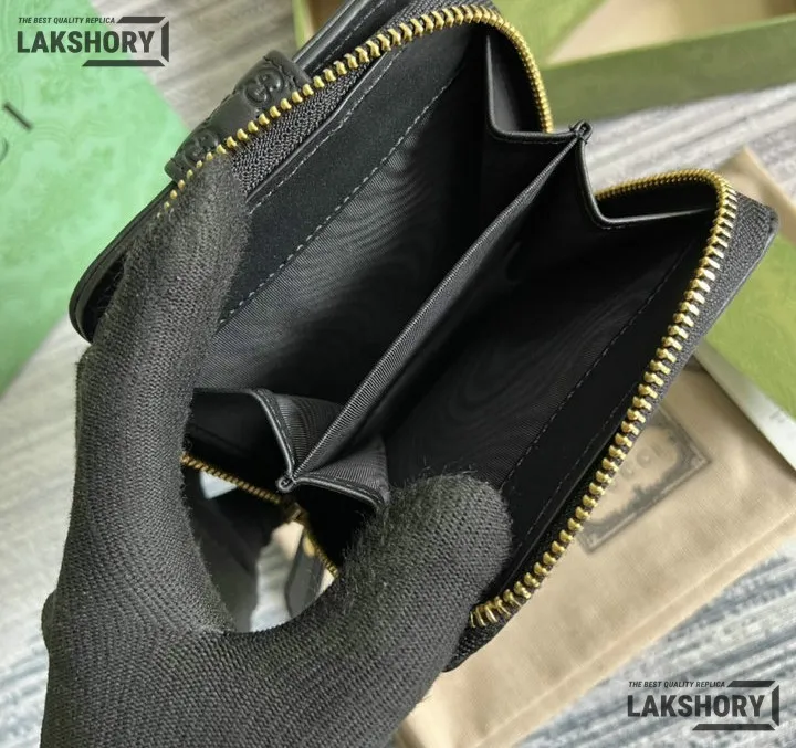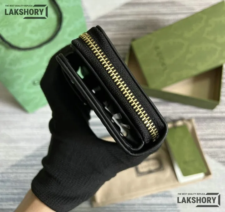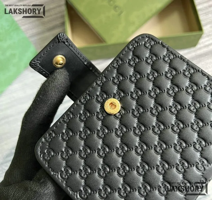 Gucci 1:1 Mirror Replica Microguccissima Compact Wallet Black 11CM/4.3IN