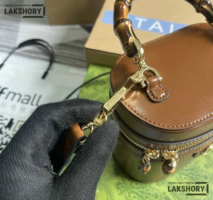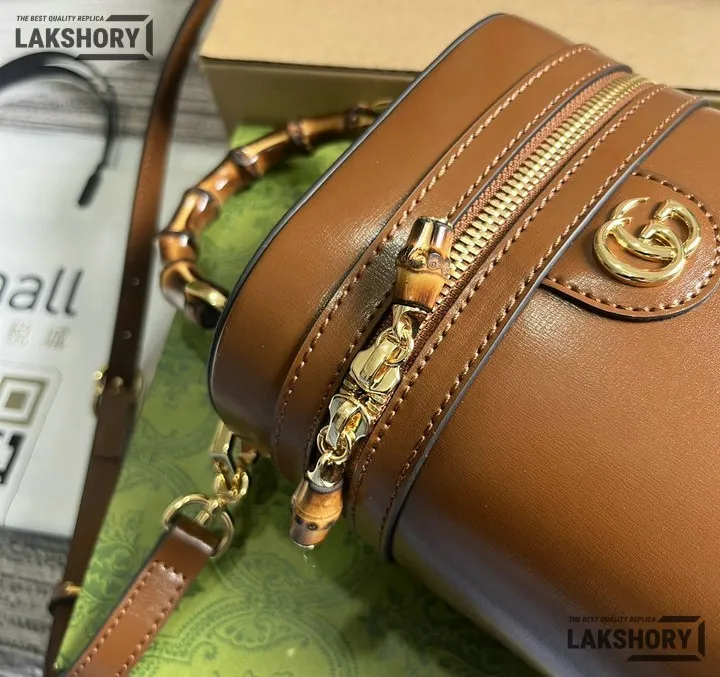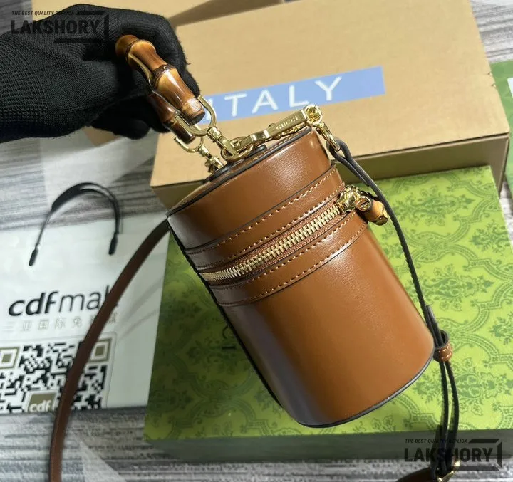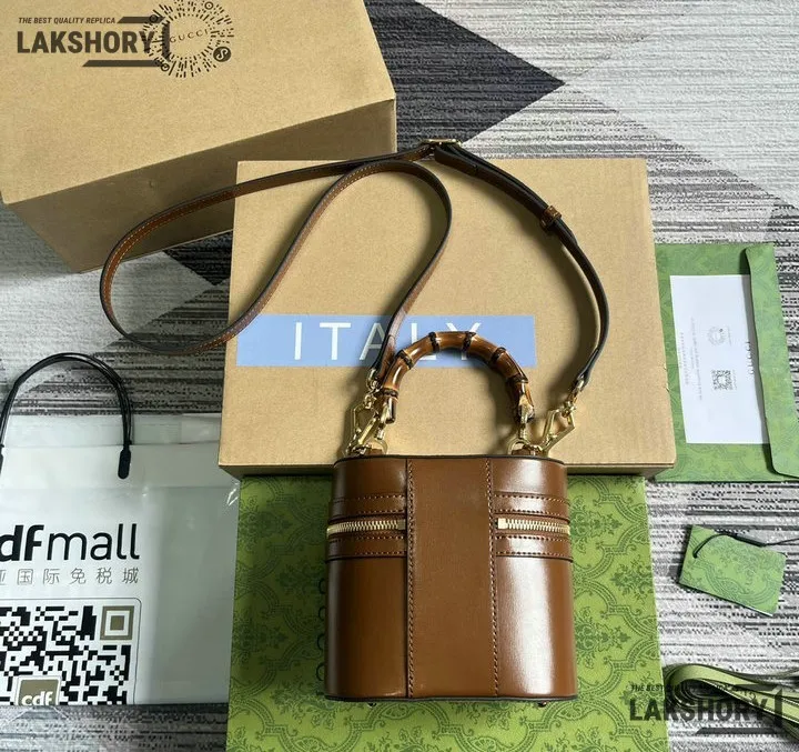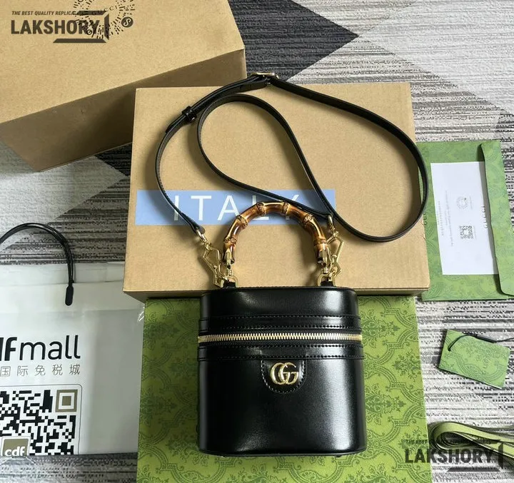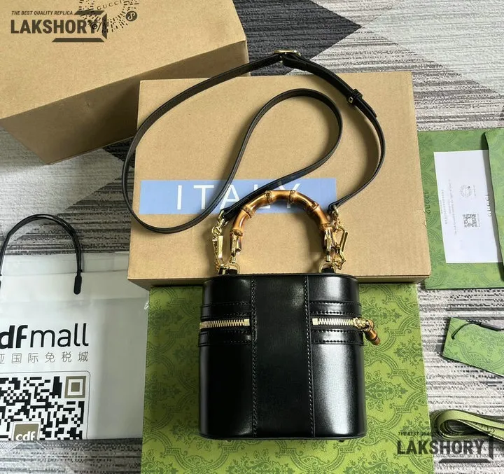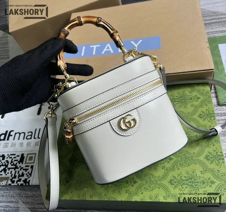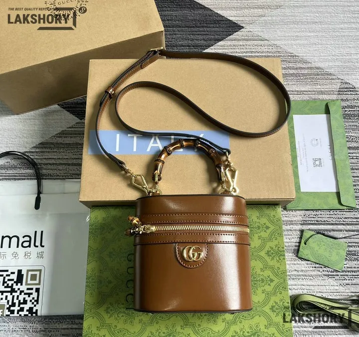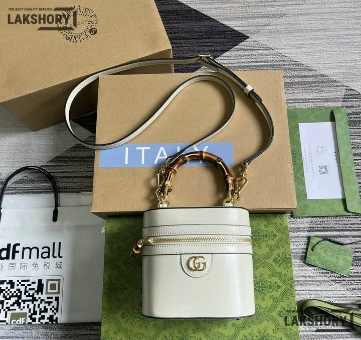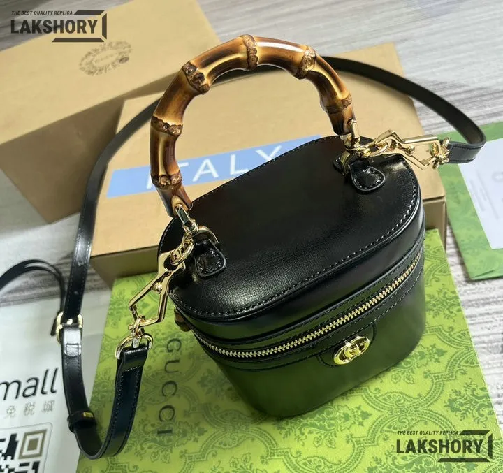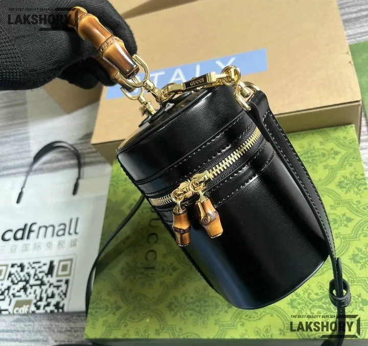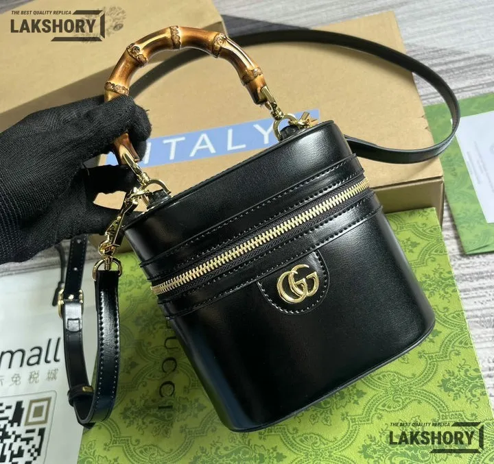 Gucci 1:1 Mirror Replica Mini Leather Bamboo Vanity Bag 15.5CM/6.1IN