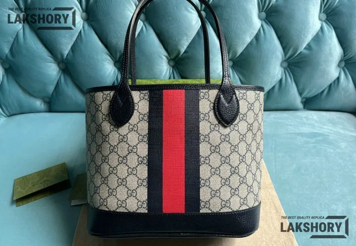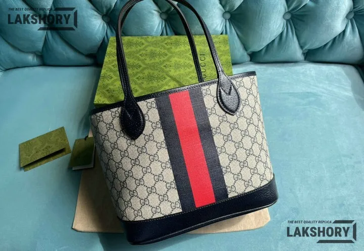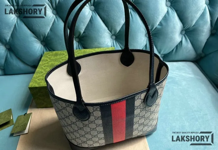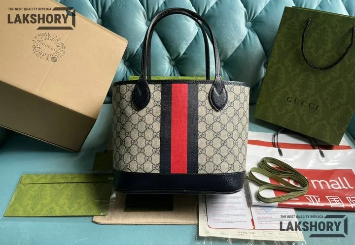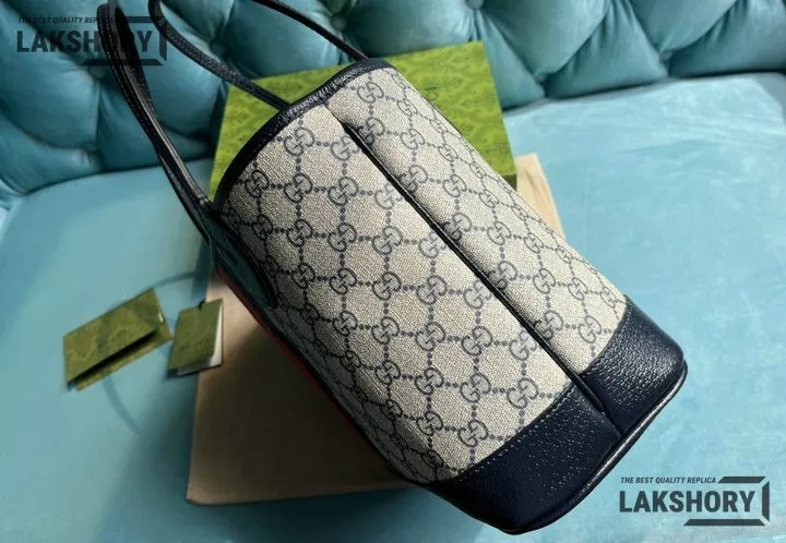 Gucci 1:1 Mirror Replica Monogram Small Ophidia Tote Beige Blue 25CM/9.8IN