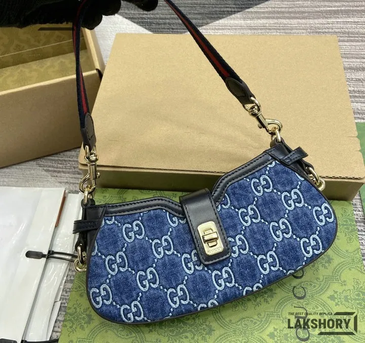 Gucci 1:1 Mirror Replica Moon Side Mini Shoulder Bag Blue 24CM/9.4IN