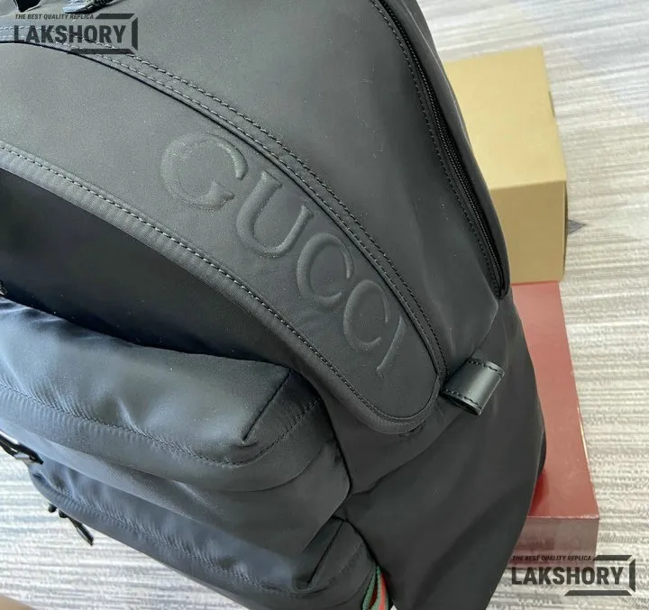 Gucci 1:1 Mirror Replica Nexus Medium Backpack Black GG Nylon 40CM/15.7IN