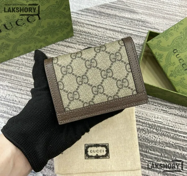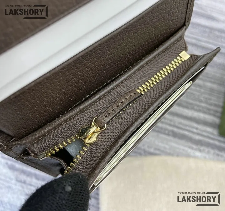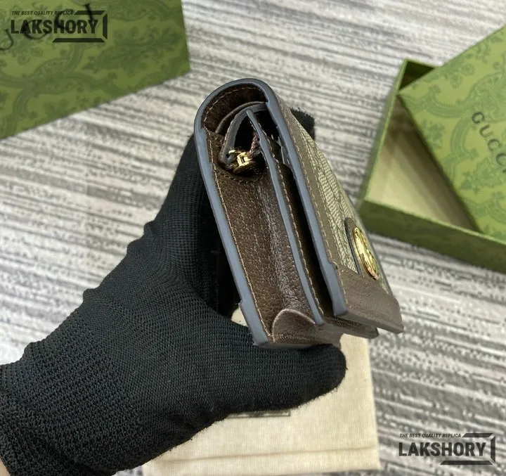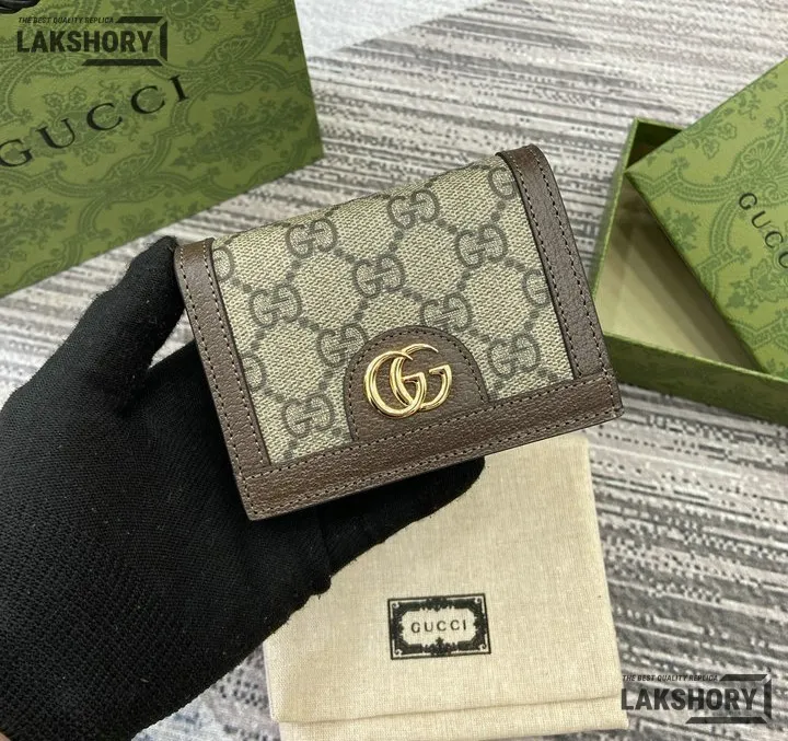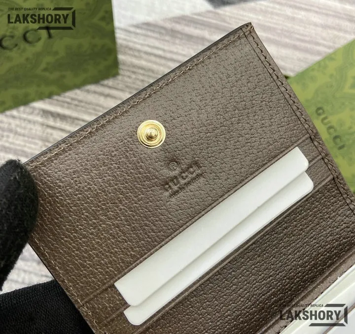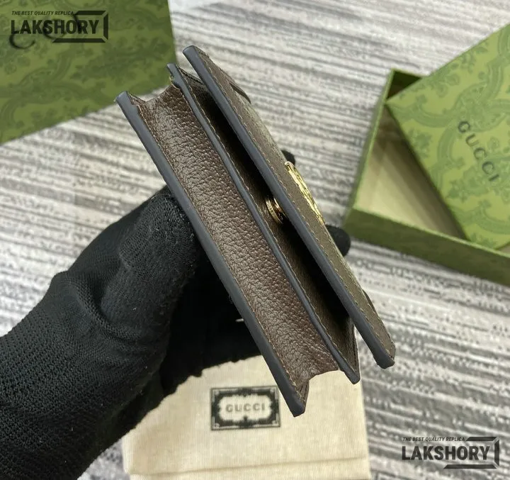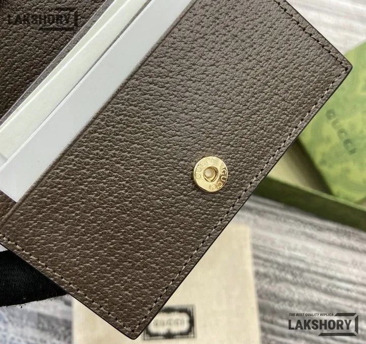 Gucci 1:1 Mirror Replica Ophidia Card Case Wallet Beige Brown 11CM/4.3IN