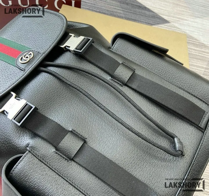 Gucci 1:1 Mirror Replica Ophidia Large Backpack Soft Leather Black 46CM/18.1IN