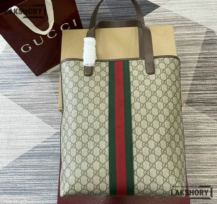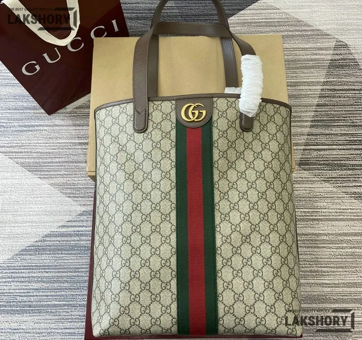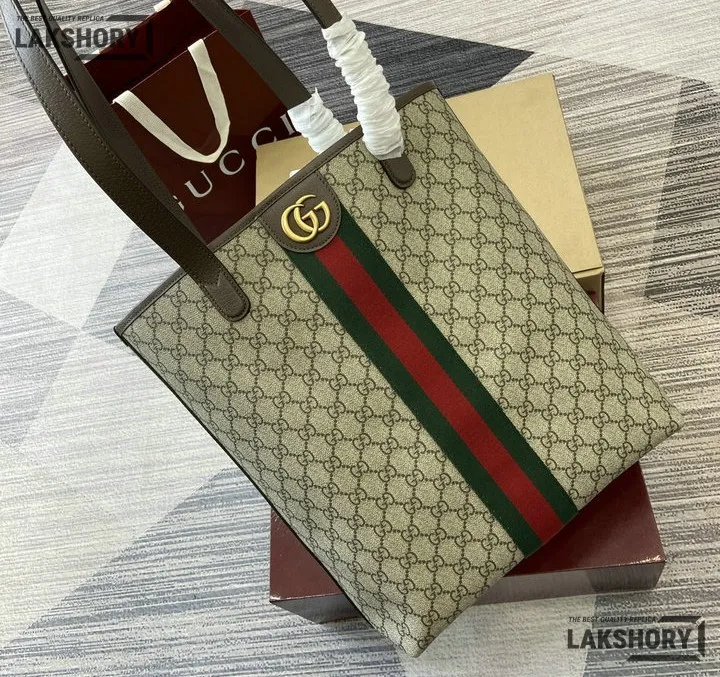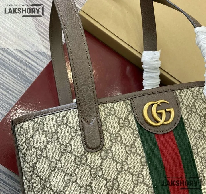 Gucci 1:1 Mirror Replica Ophidia Medium Tote Bag Beige Brown 36CM/14.2IN