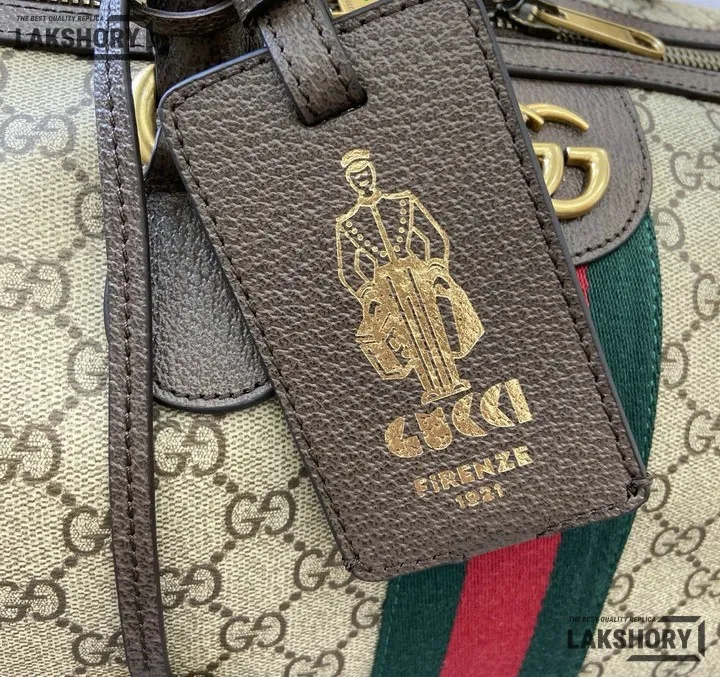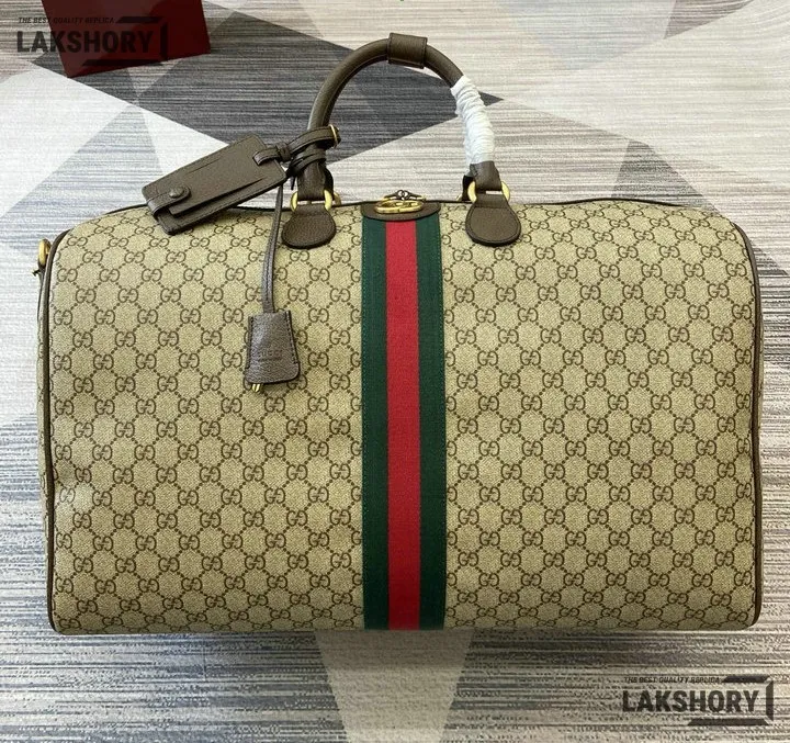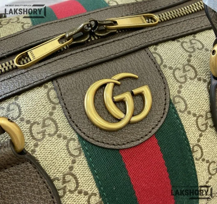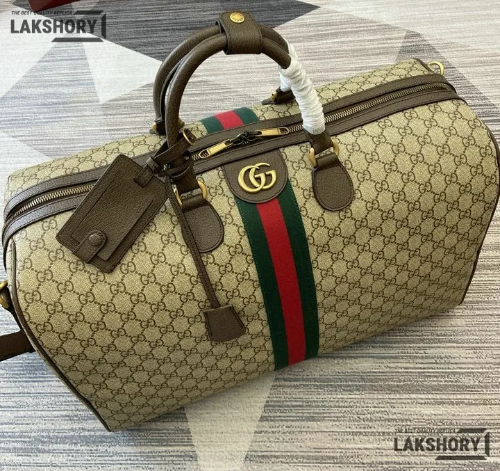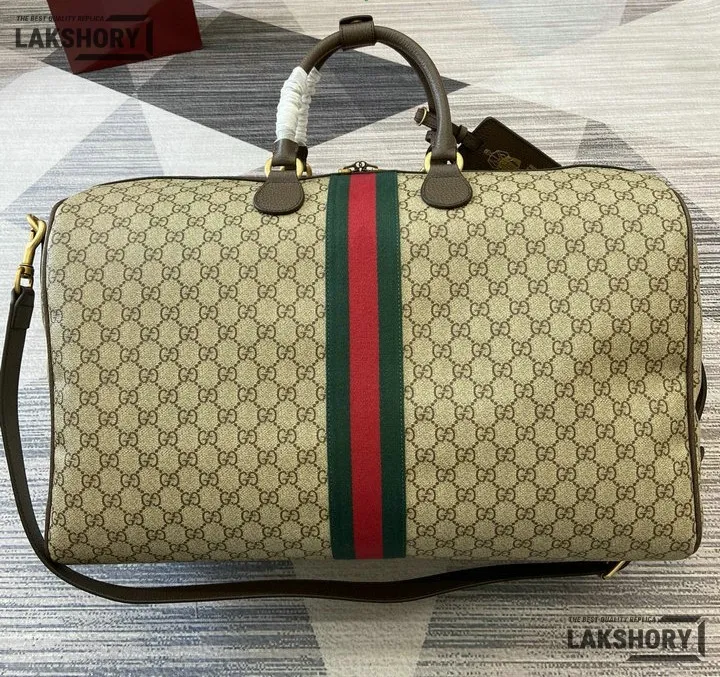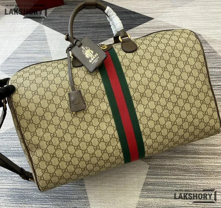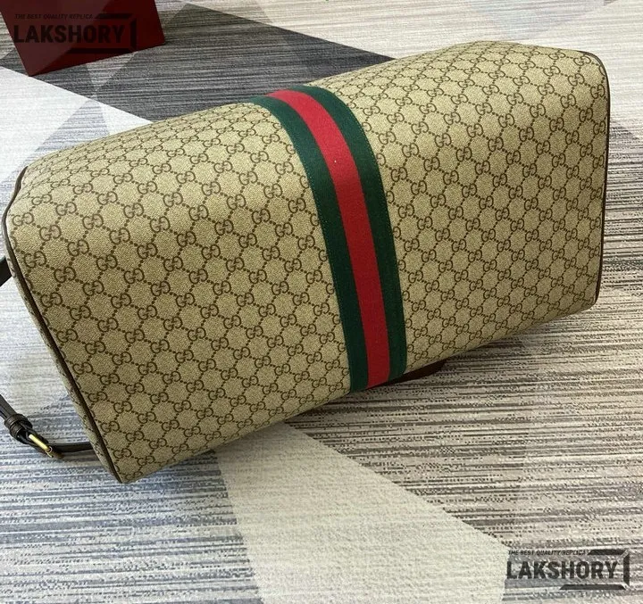 Gucci 1:1 Mirror Replica Ophidia Savoy Large Duffle Bag Beige Brown 52CM/20.5IN