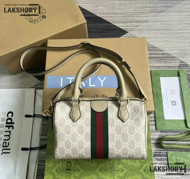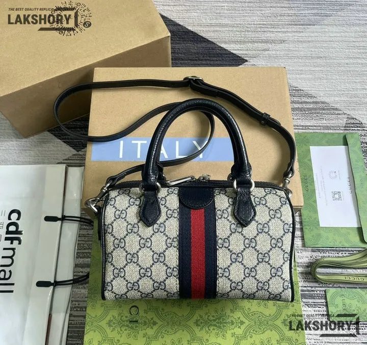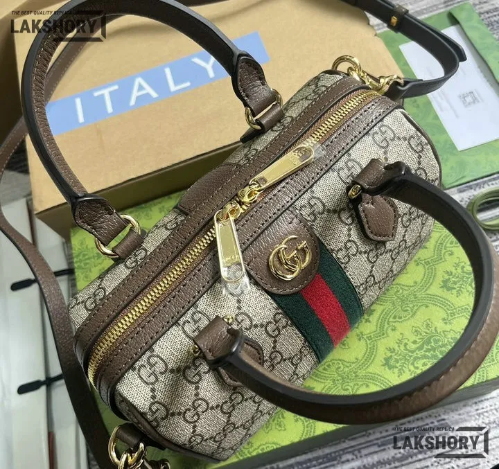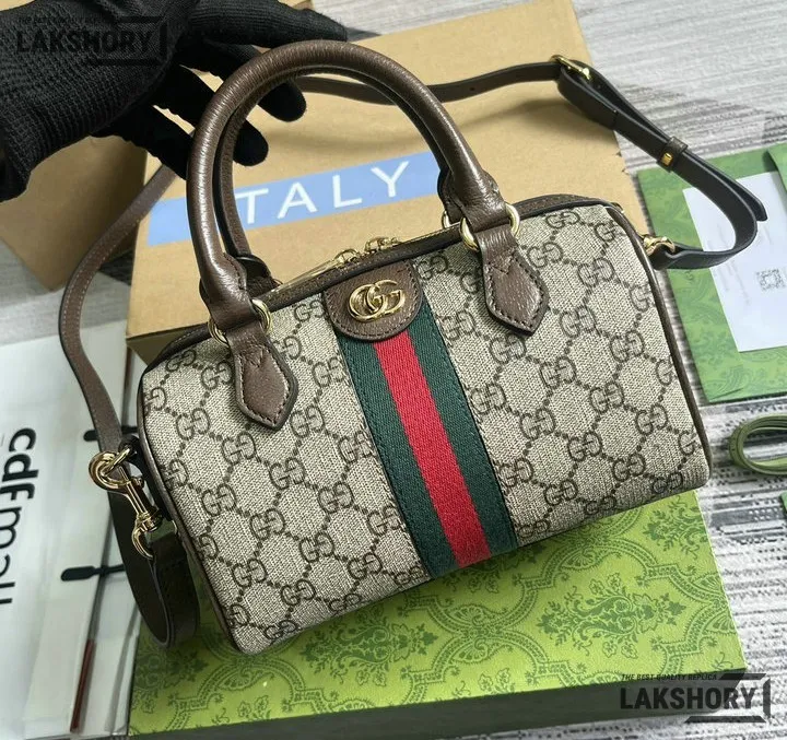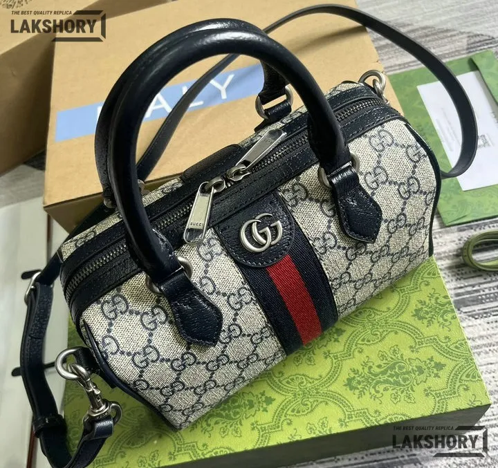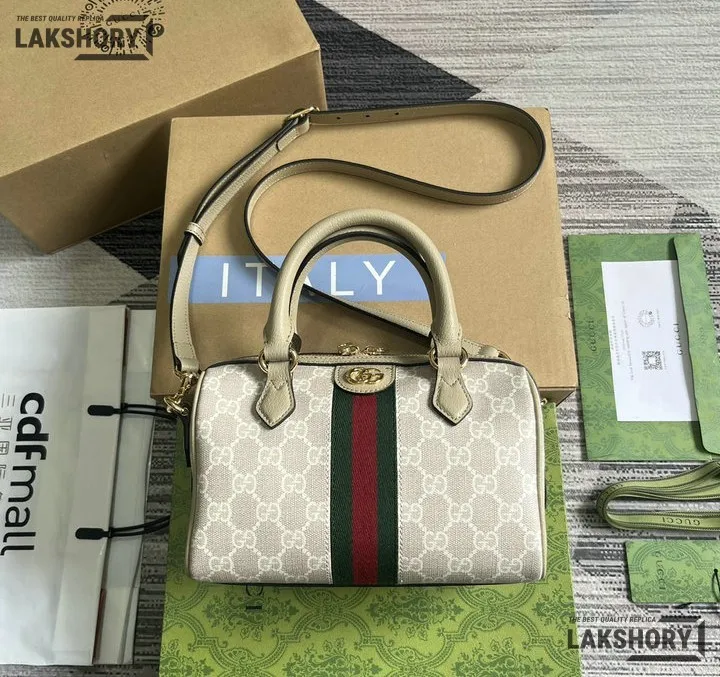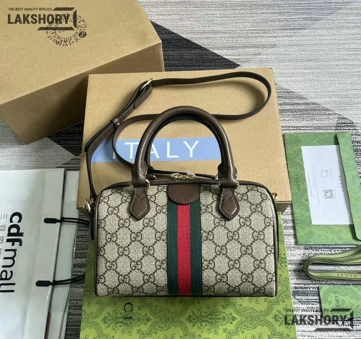 Gucci 1:1 Mirror Replica Ophidia Small Boston Bag GG Supreme 21.5CM/8.5IN