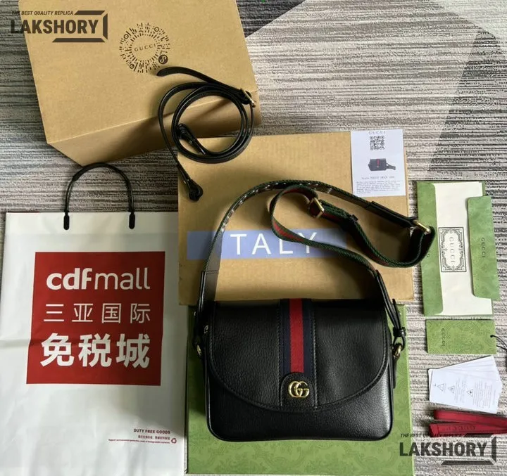 Gucci 1:1 Mirror Replica Ophidia Small GG Supreme Black Navy 23CM/9.1IN