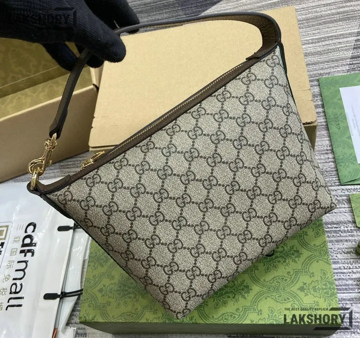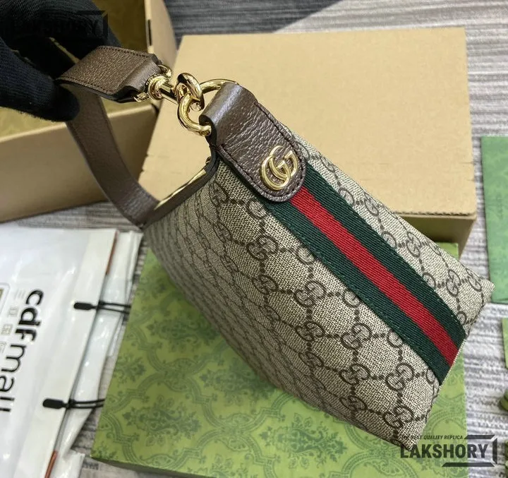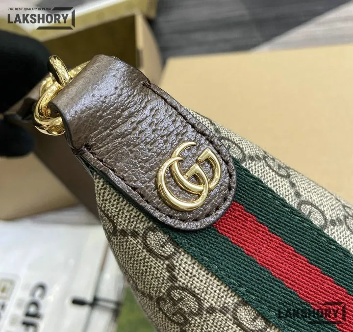 Gucci 1:1 Mirror Replica Ophidia Small Shoulder Bag Beige Ebony 20CM/7.9IN