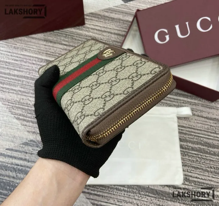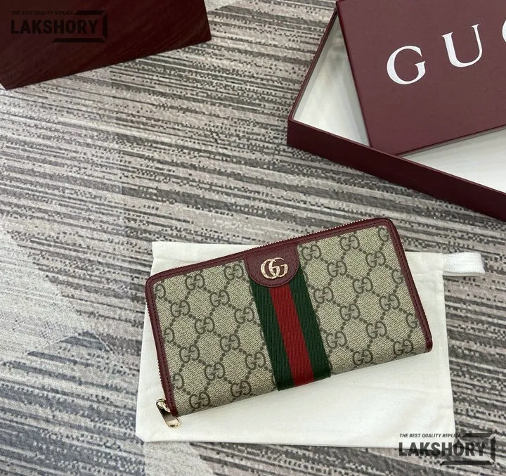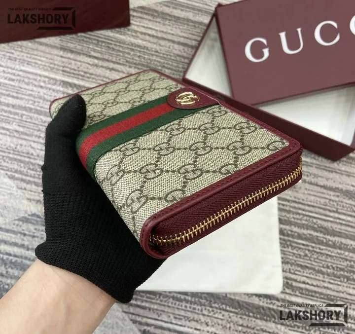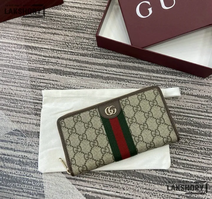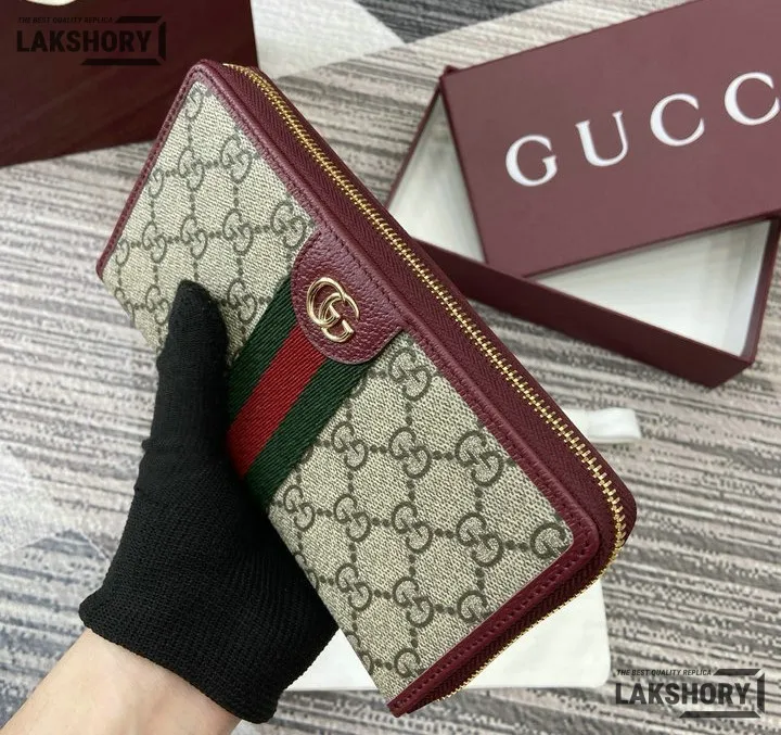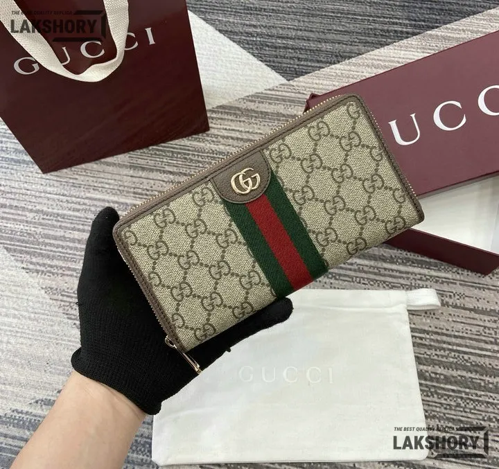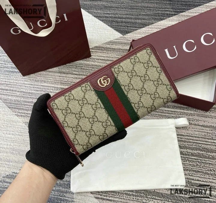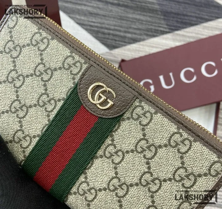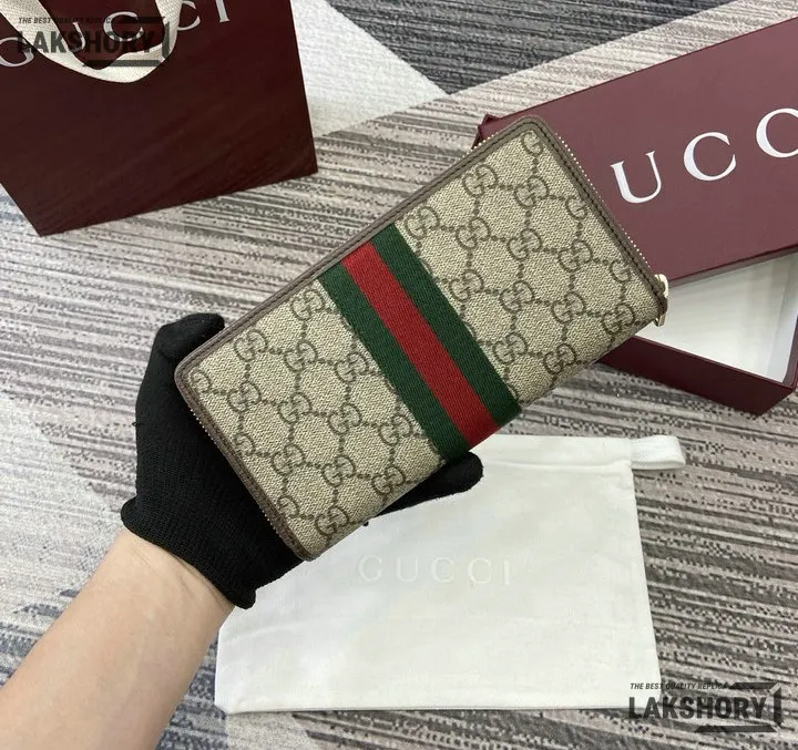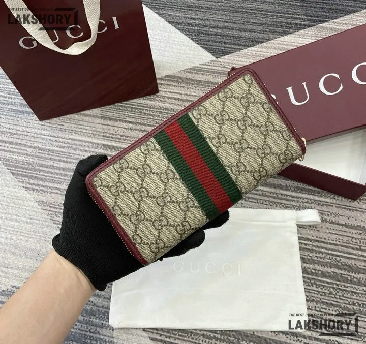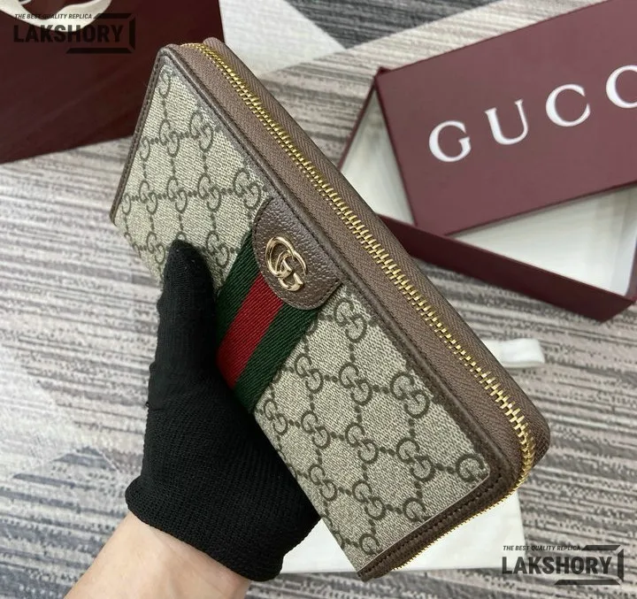 Gucci 1:1 Mirror Replica Ophidia Zip Around Wallet GG Supreme 20CM/7.9IN