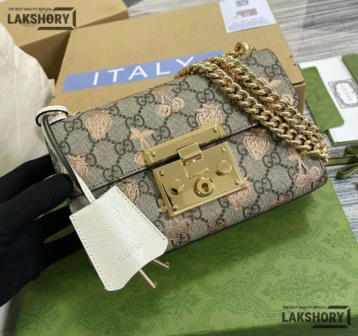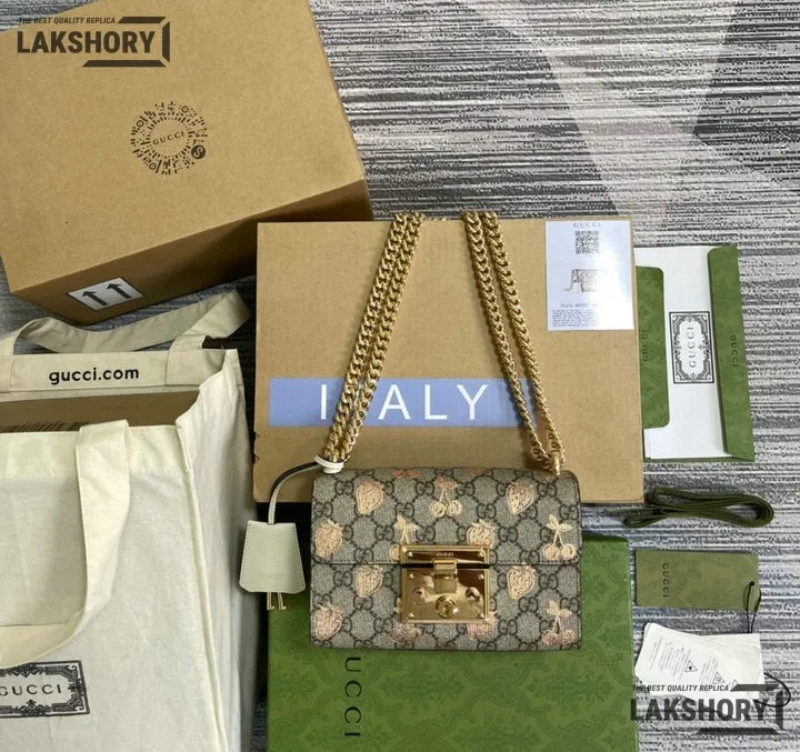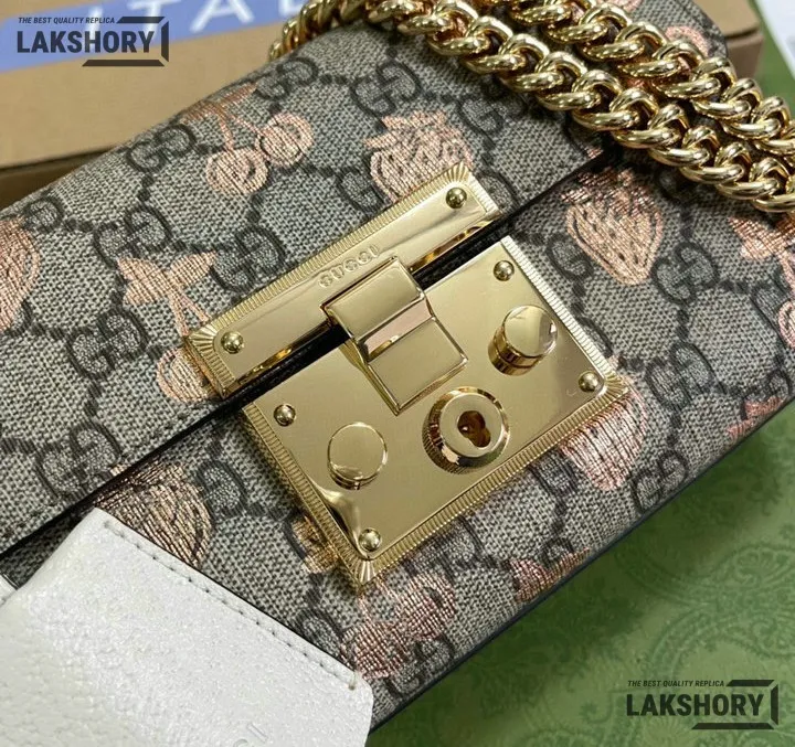 Gucci 1:1 Mirror Replica Padlock GG Supreme Strawberry Print Bag 20CM/7.9IN
