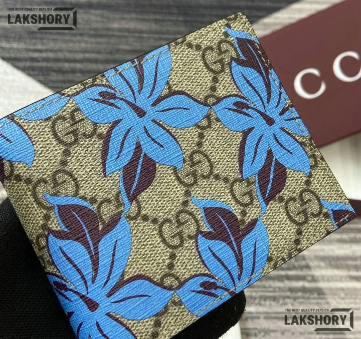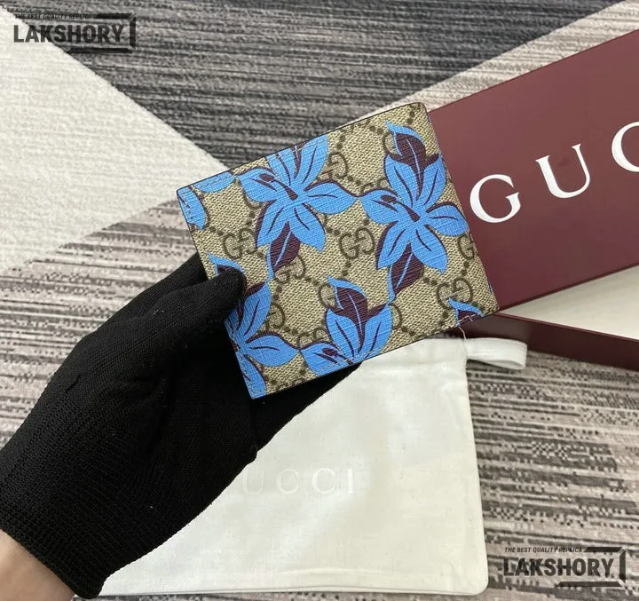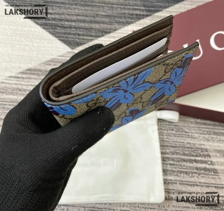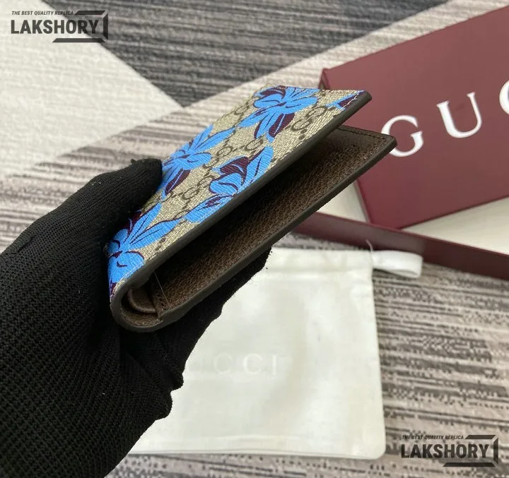 Gucci 1:1 Mirror Replica Printed Floral w/ Coin Purse Wallet Blue 9CM/3.5IN