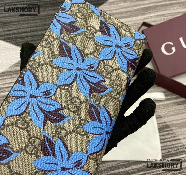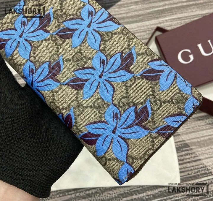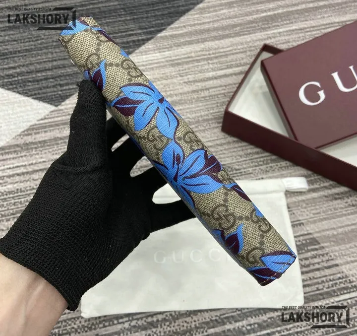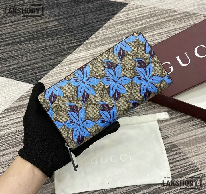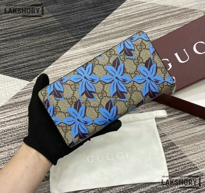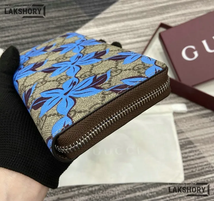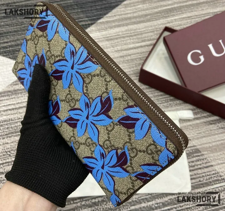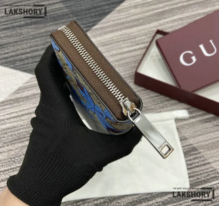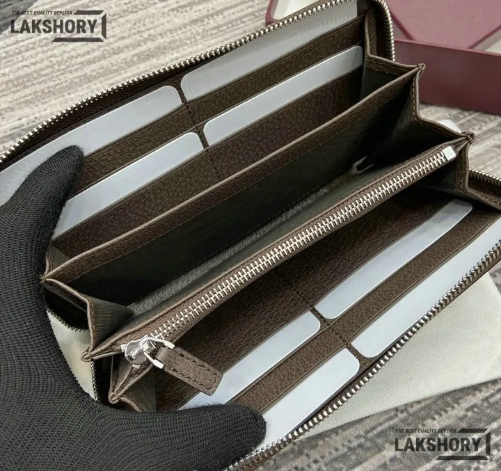 Gucci 1:1 Mirror Replica Printed Zip Around Wallet Beige Dark Brown 19CM/7.5IN
