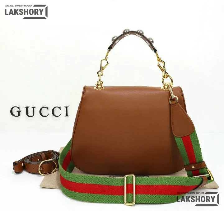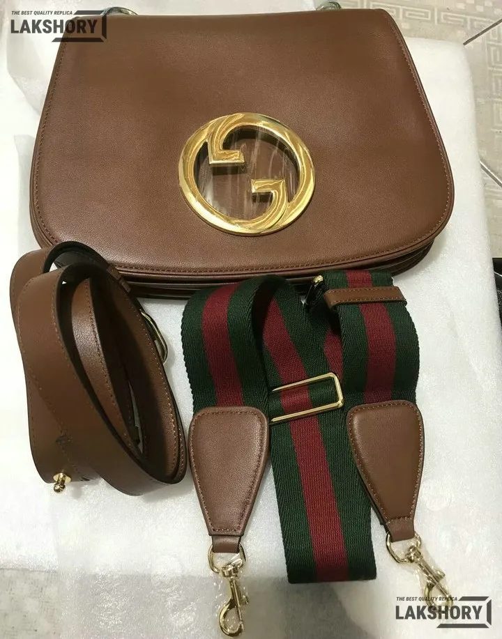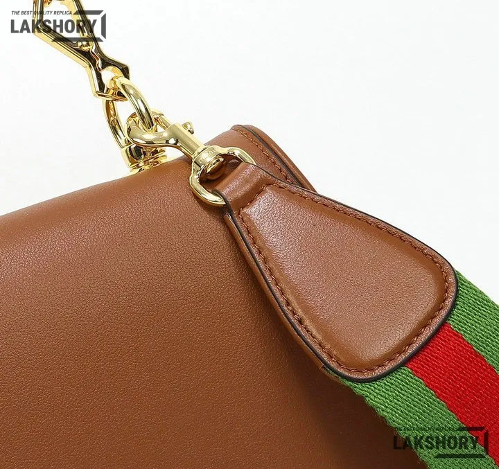 Gucci 1:1 Mirror Replica Roxy Web Medium Blondie Flap Bag Brown 29CM/11.4IN