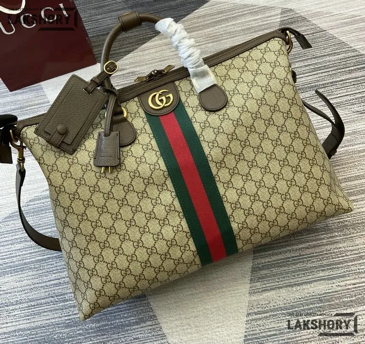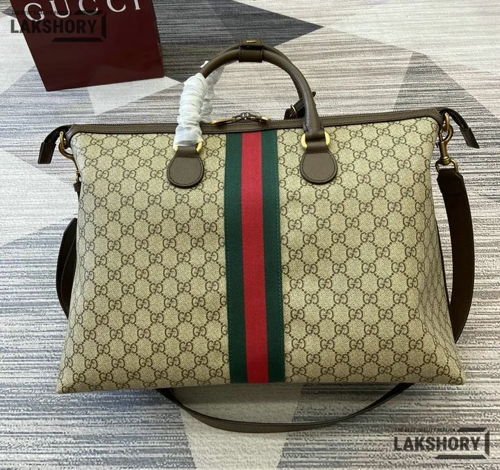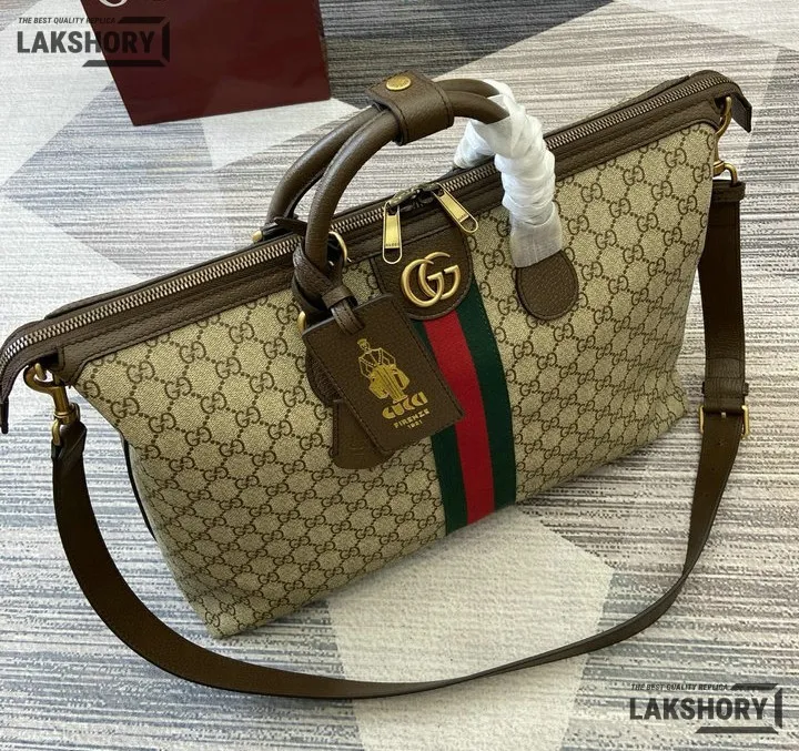 Gucci 1:1 Mirror Replica Savoy Medium Duffle Bag Beige & Dark Brown 48CM/18.9IN