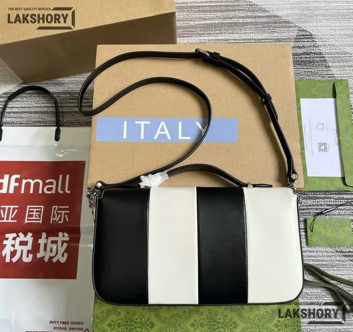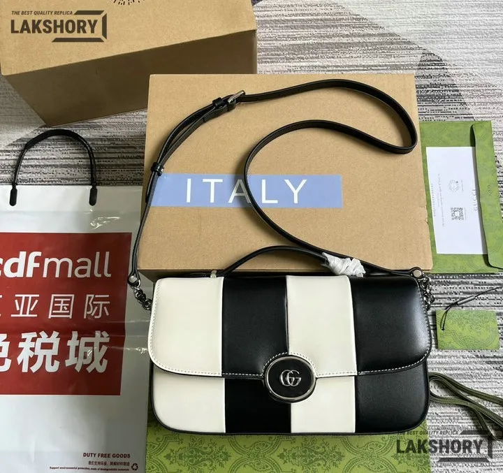 Gucci 1:1 Mirror Replica Senna Lines Petite GG Black Mystic White 27CM/10.6IN