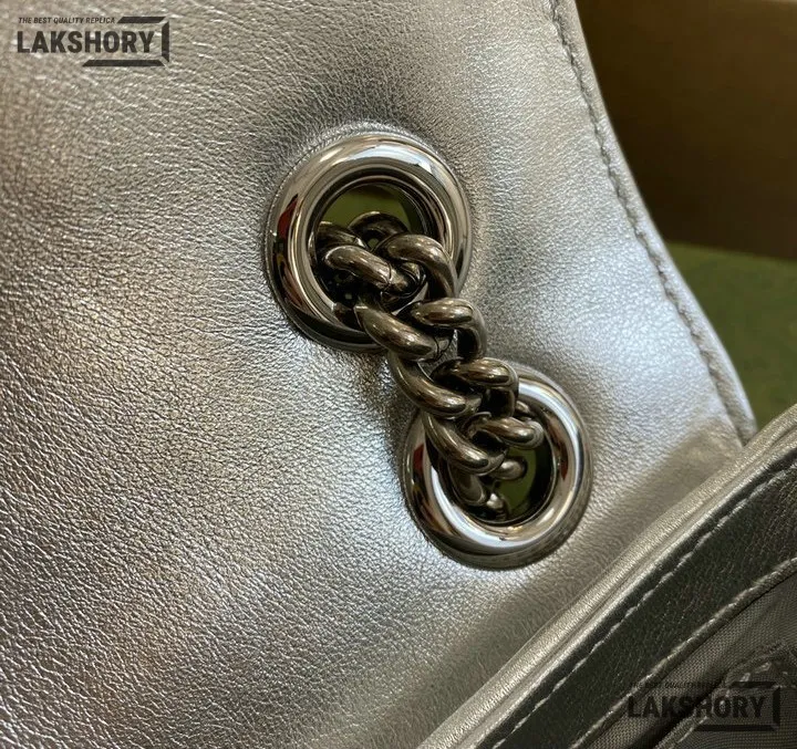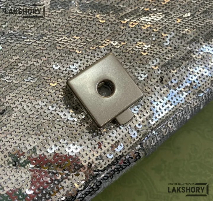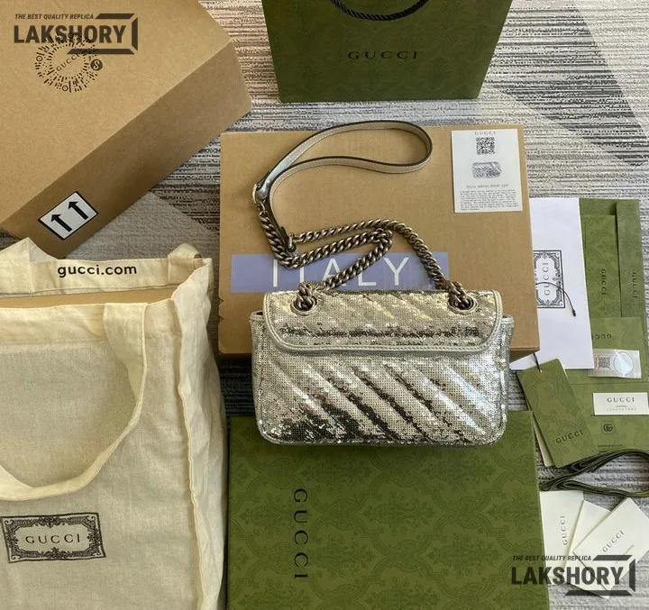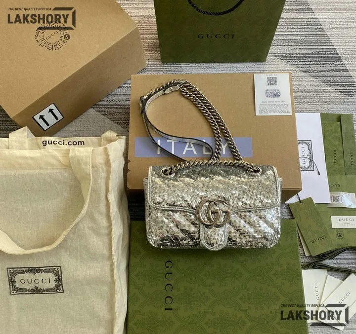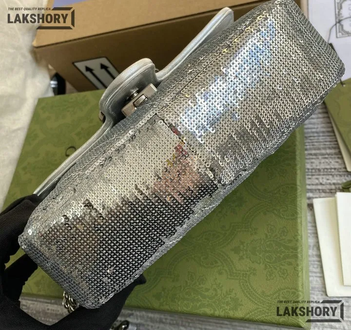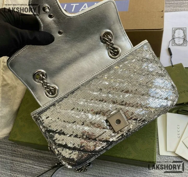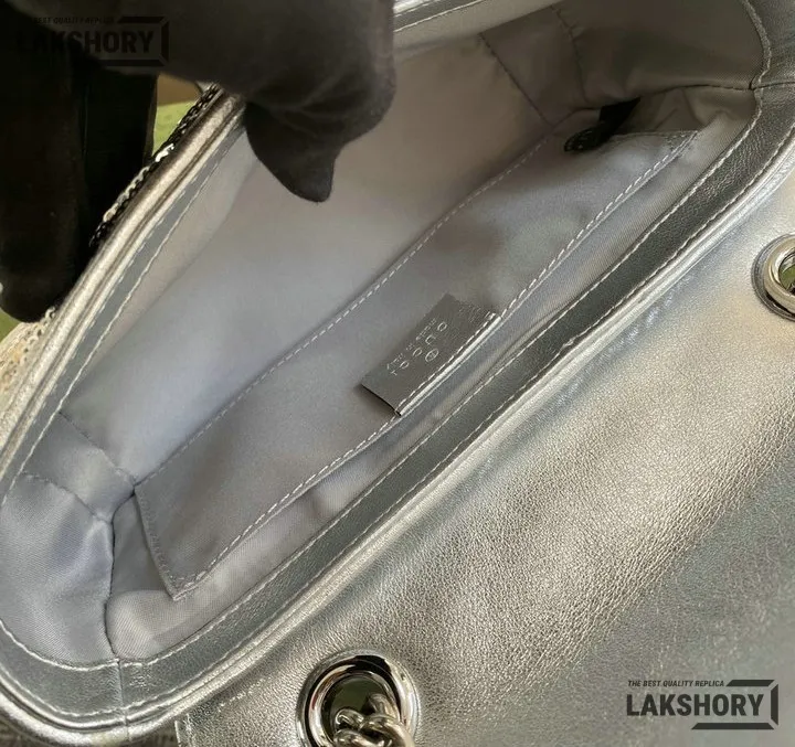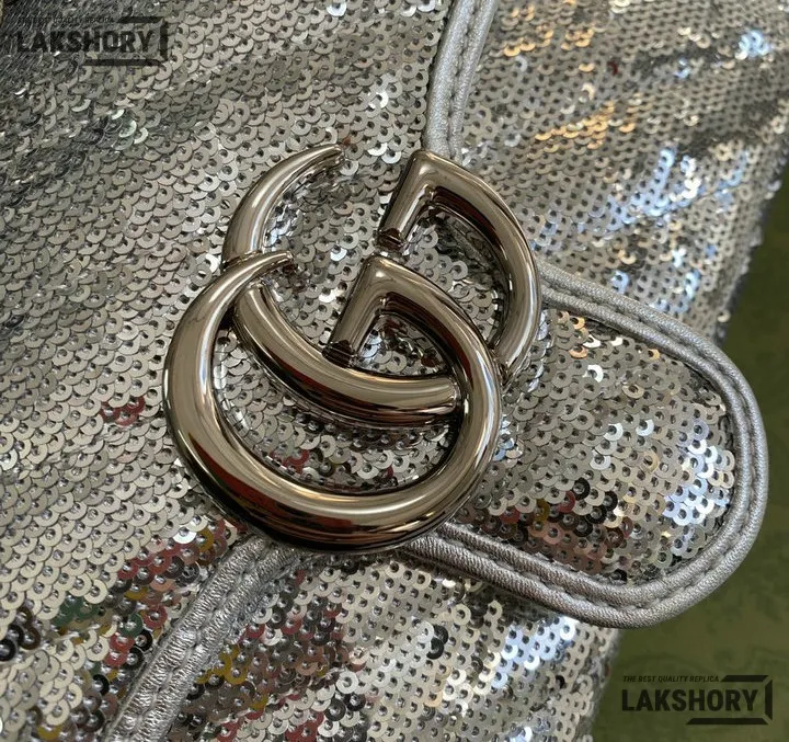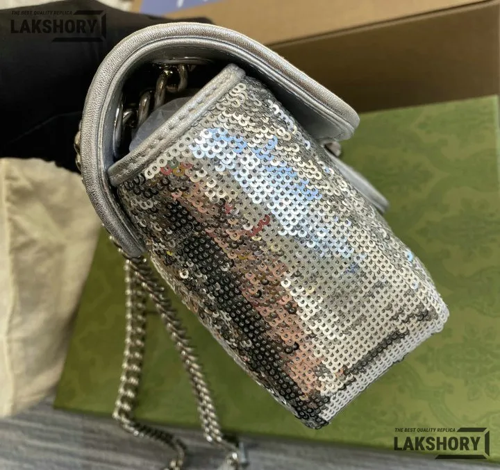 Gucci 1:1 Mirror Replica Sequin Mini GG Marmont Matelasse Silver 22CM/8.7IN