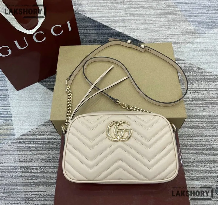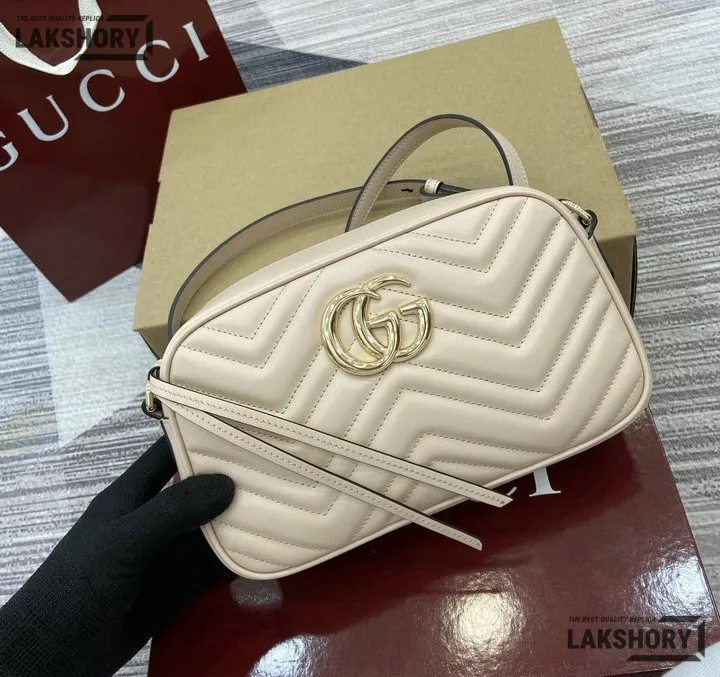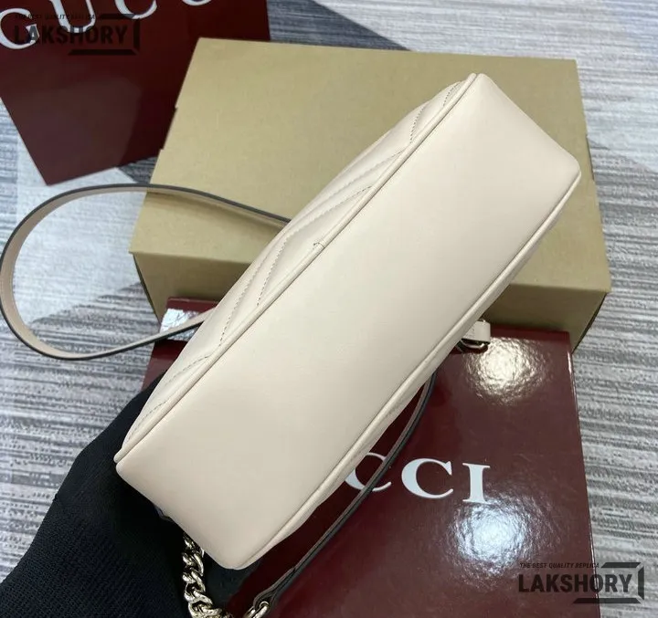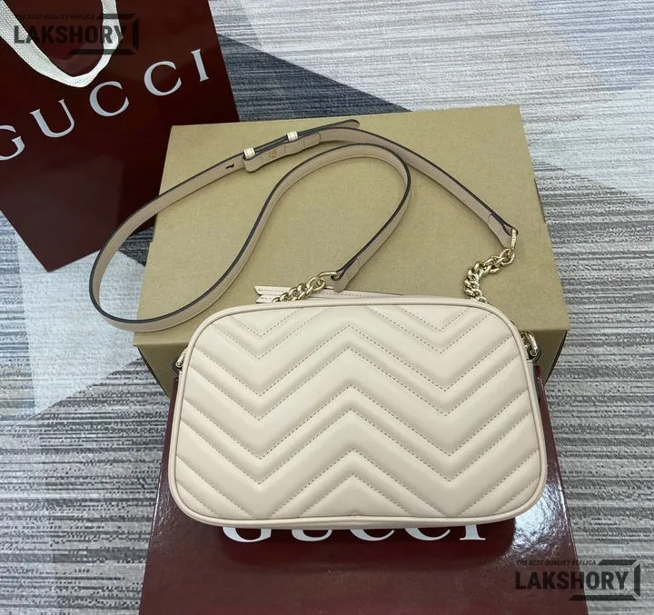 Gucci 1:1 Mirror Replica Small GG Marmont Camera Bag White 24CM/9.4IN