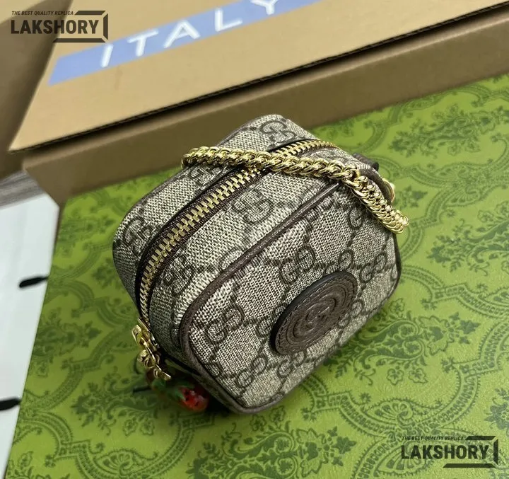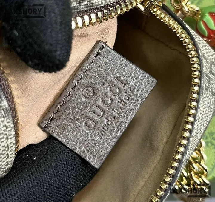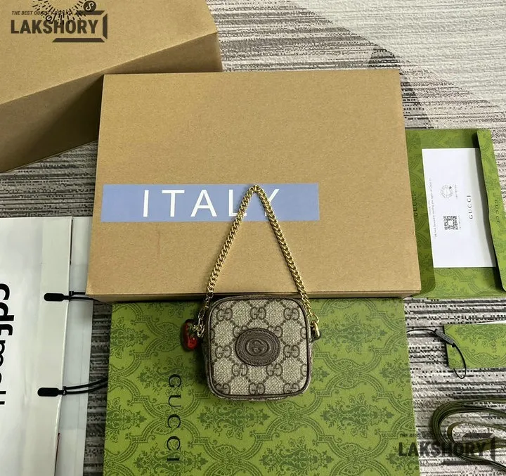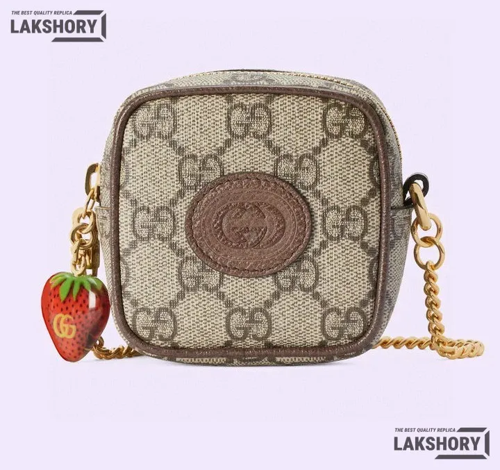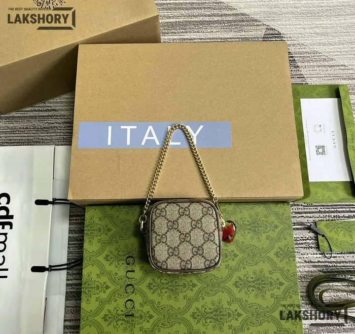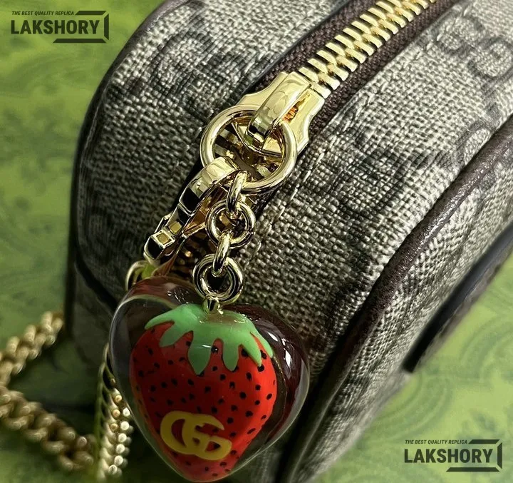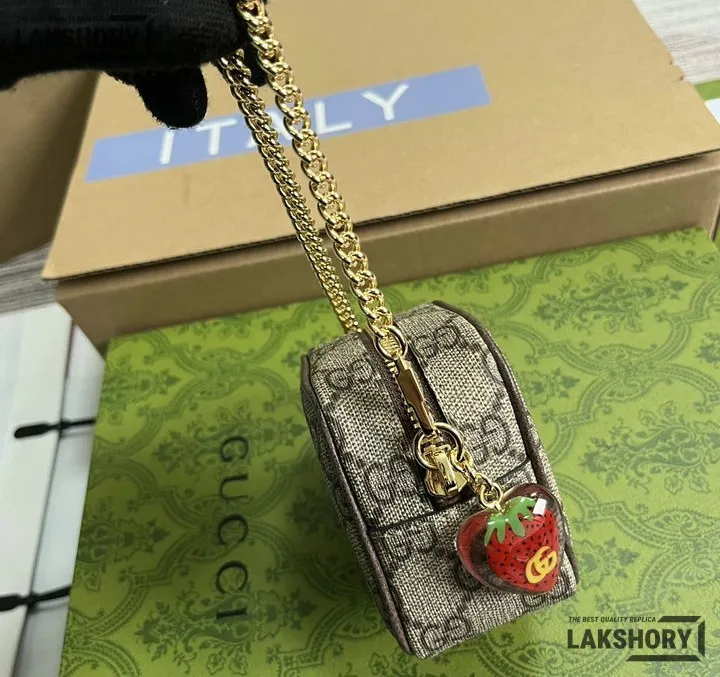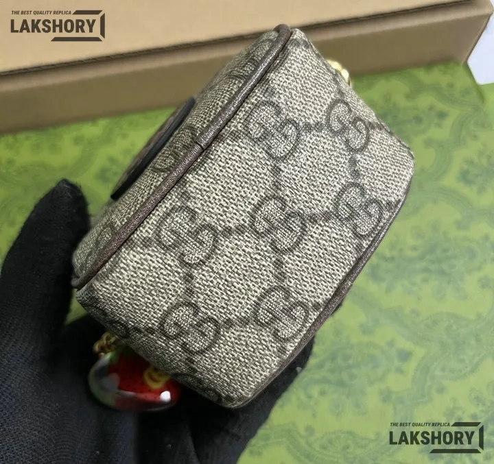 Gucci 1:1 Mirror Replica Strawberry Coin Wallet w/ Chain Ebony 3.5CM/1.4IN
