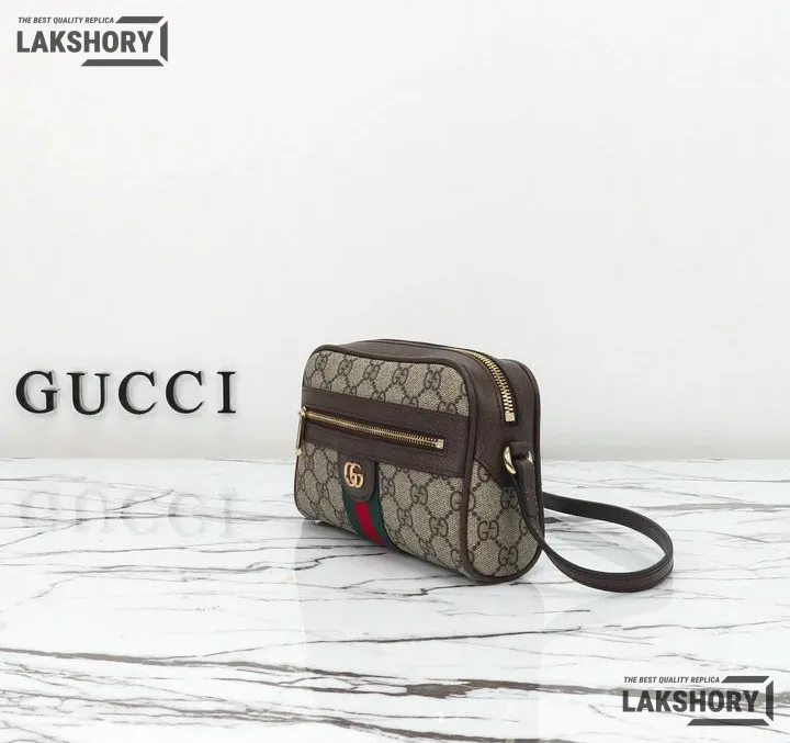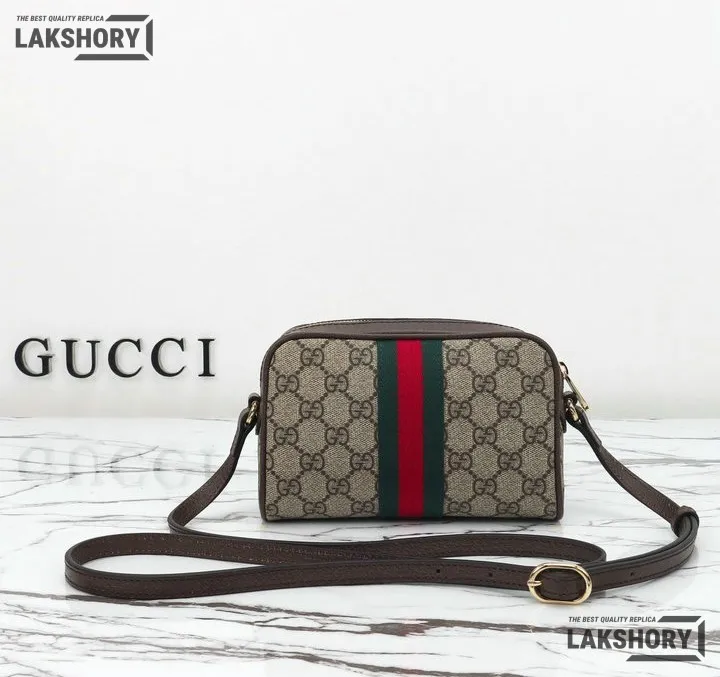 Gucci 1:1 Mirror Replica Supreme Ophidia Mini Bag Beige & Dark Brown 18CM/7.1IN