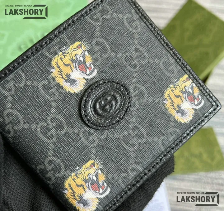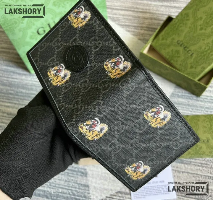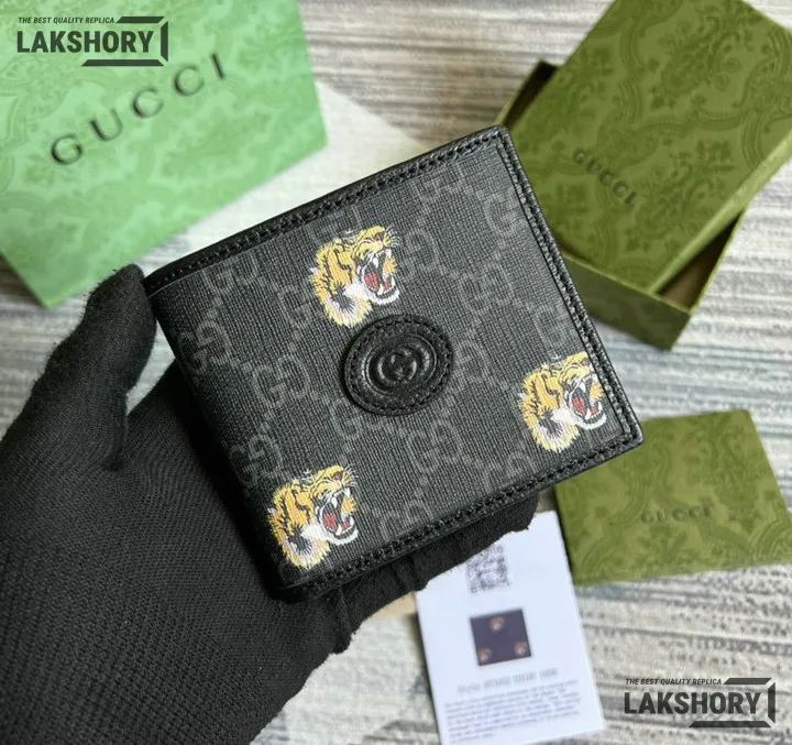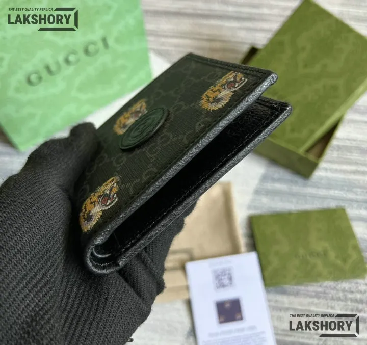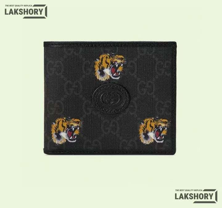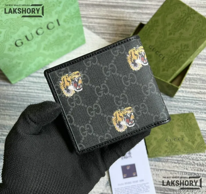 Gucci 1:1 Mirror Replica Tiger Face Print GG Supreme Wallet 9CM/3.5IN