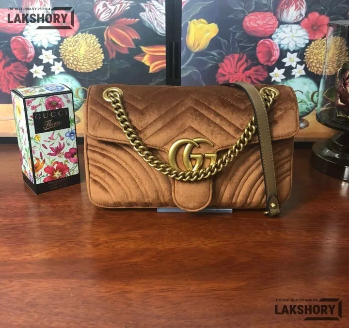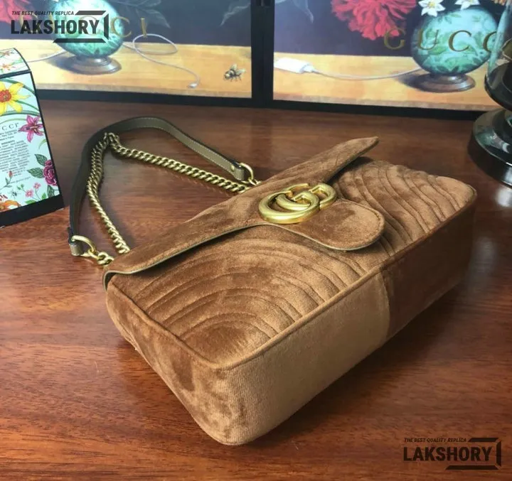 Gucci 1:1 Mirror Replica Velvet Matelasse Small GG Marmont Taupe 26CM/10.2IN