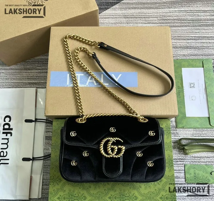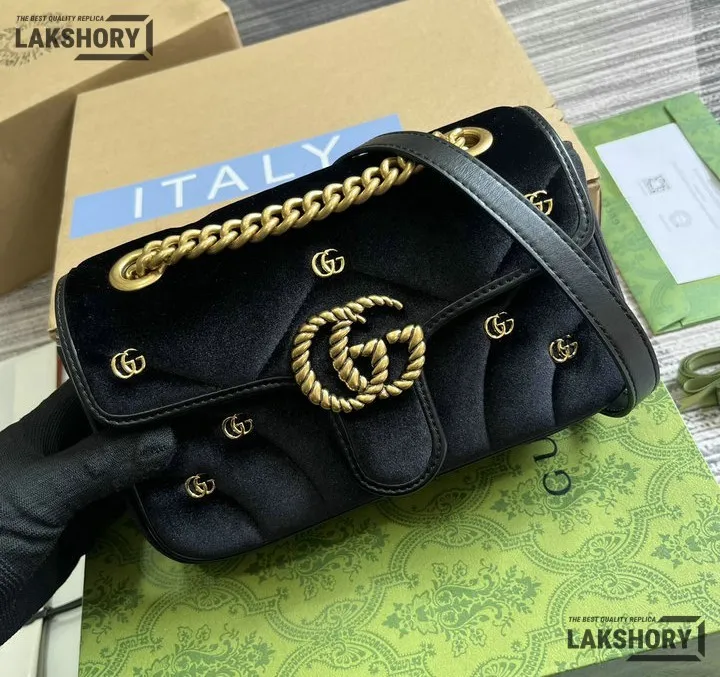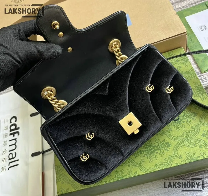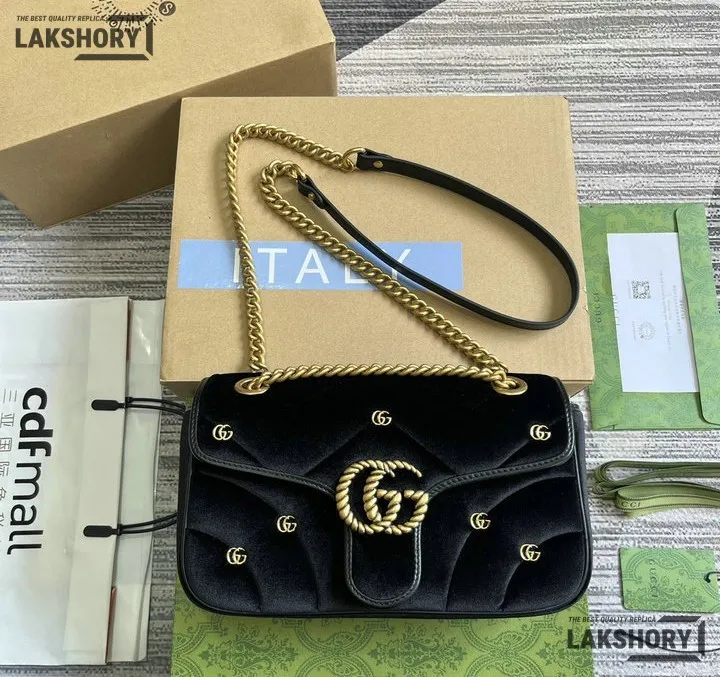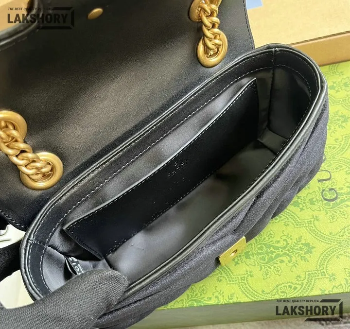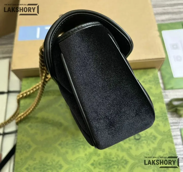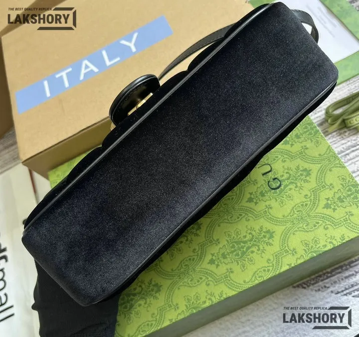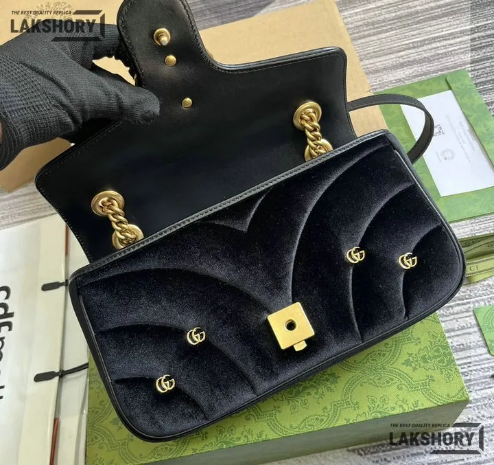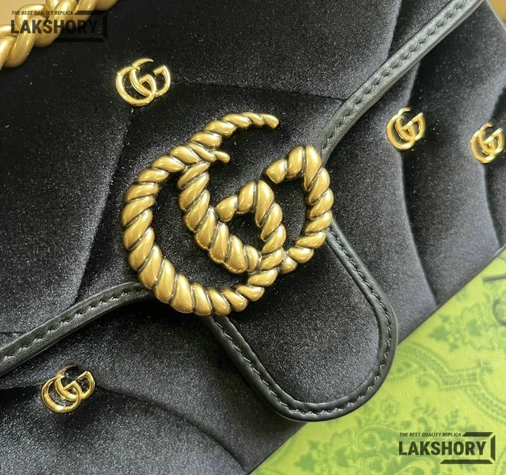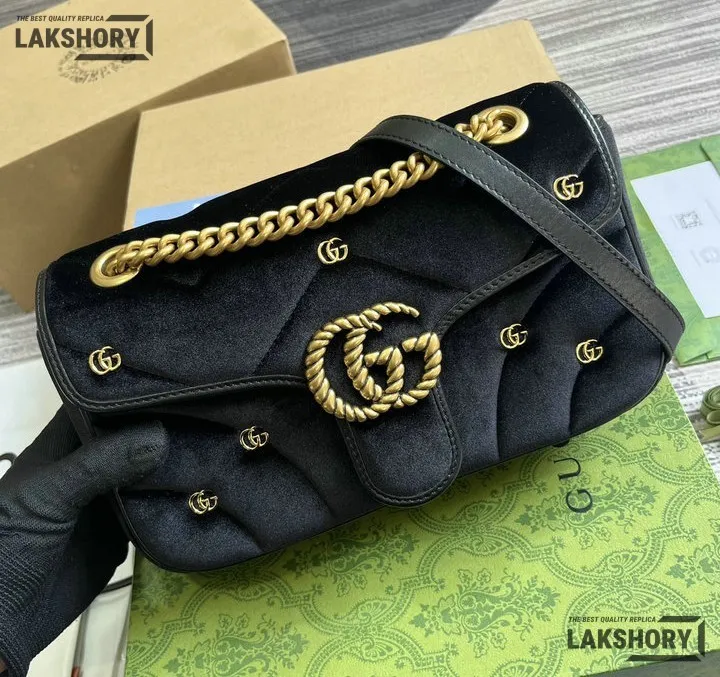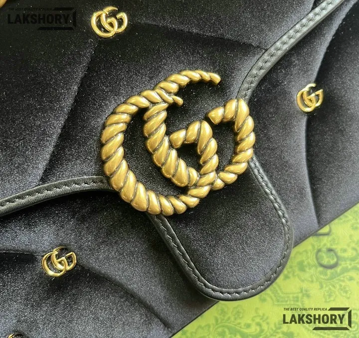 Gucci 1:1 Mirror Replica Velvet Studs Small Torchon GG Marmont Black 26CM/10.2IN