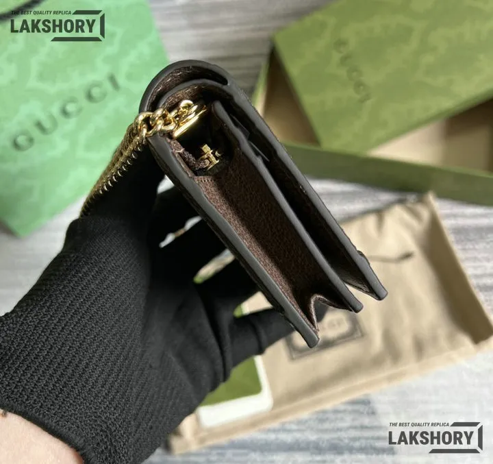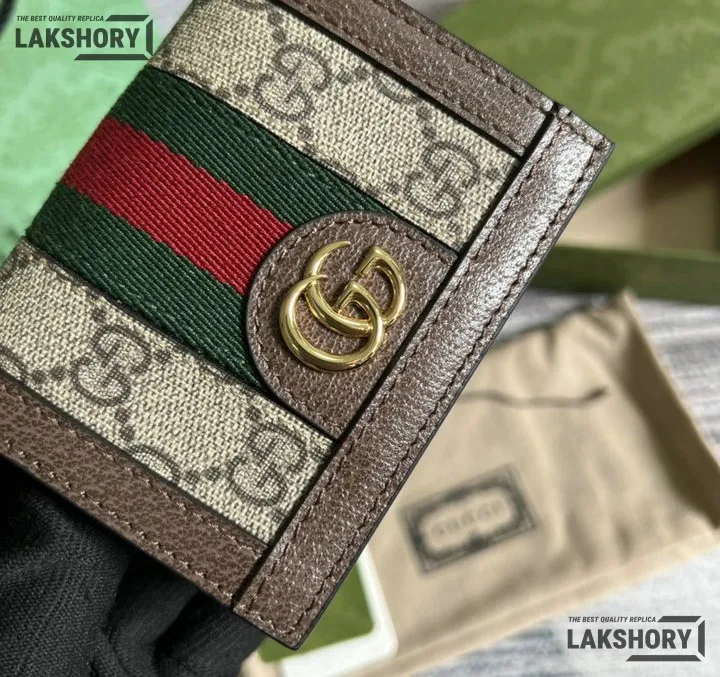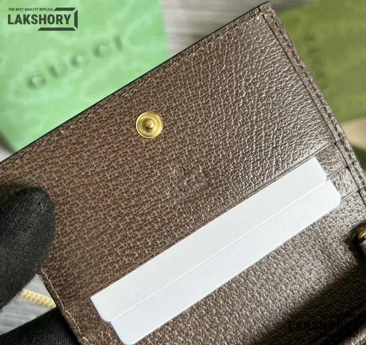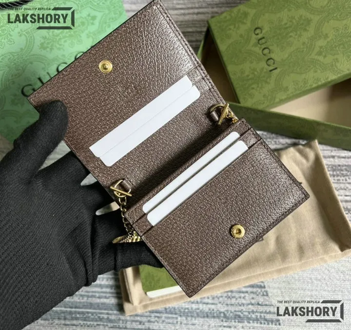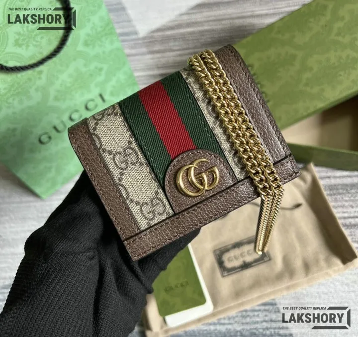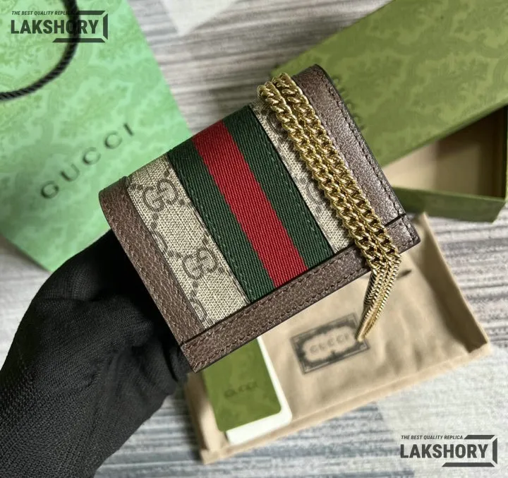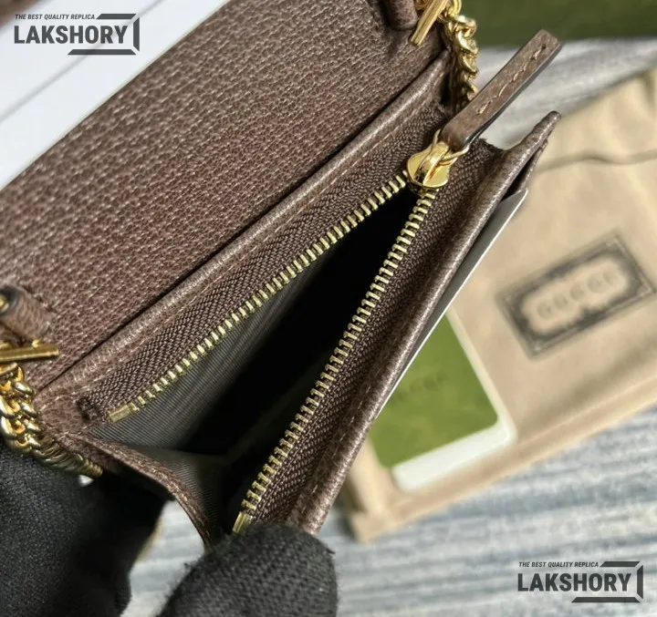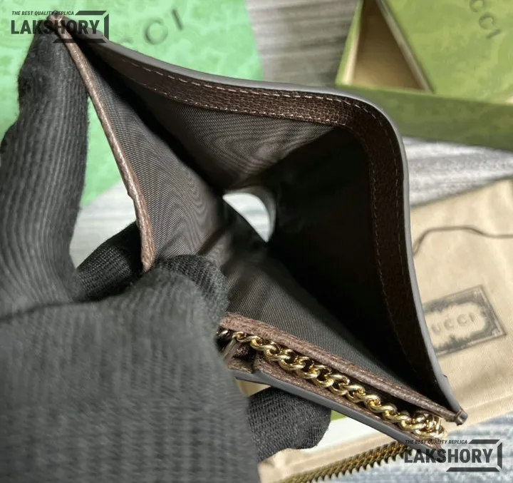 Gucci 1:1 Mirror Replica Web Ophidia Chain Card Case Beige 11CM/4.3IN