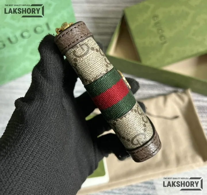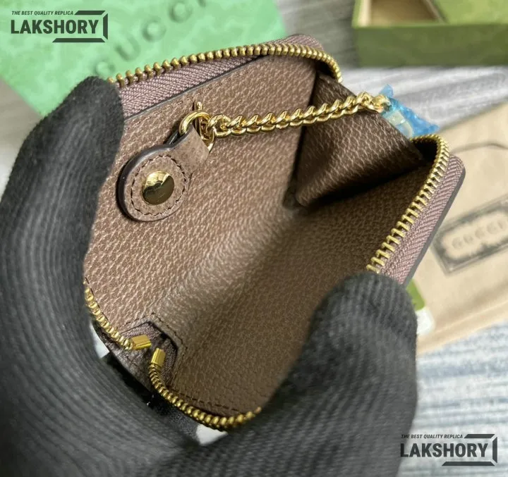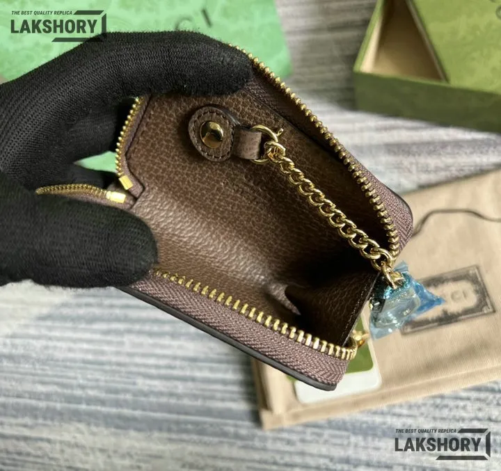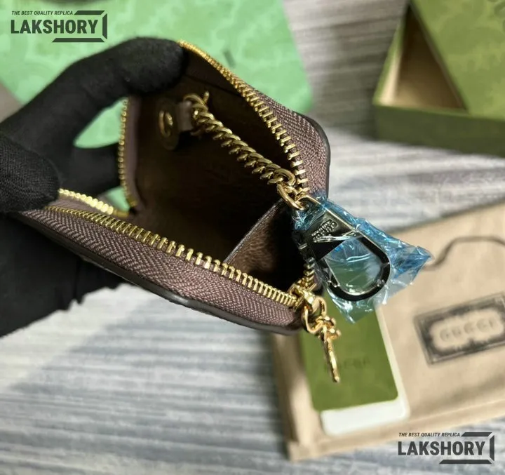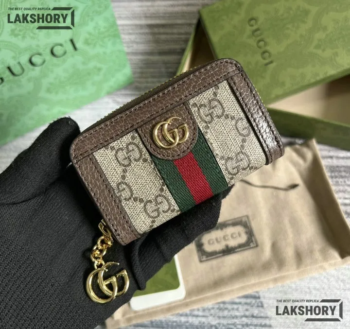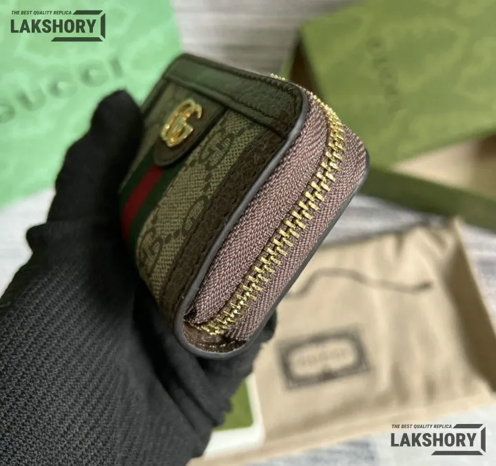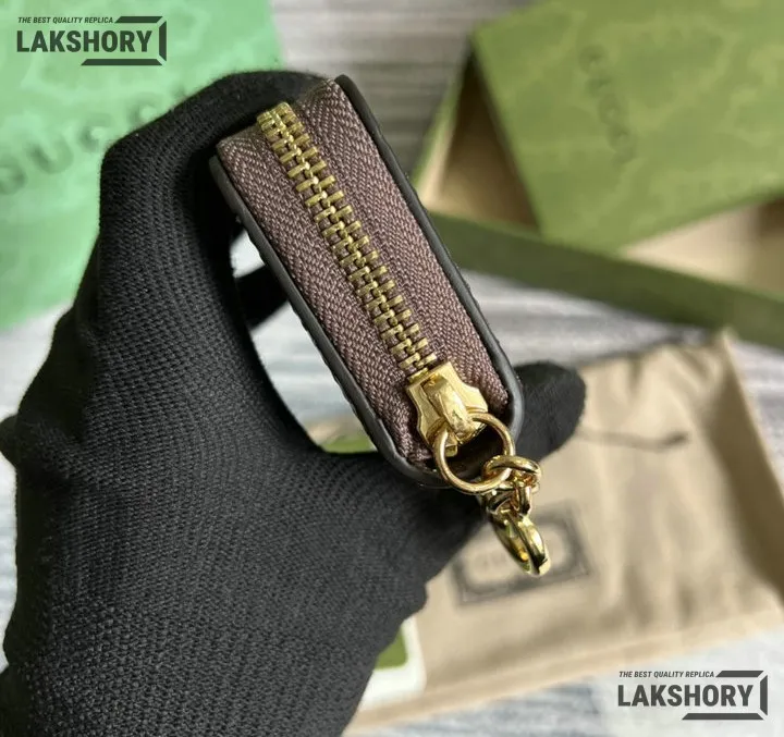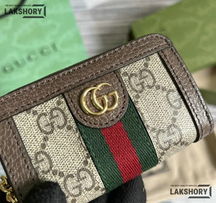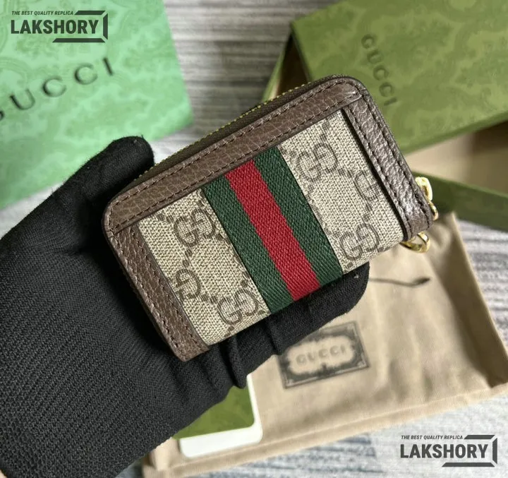 Gucci 1:1 Mirror Replica Web Ophidia Zip Around Key Case Beige 10.5CM/4.1IN