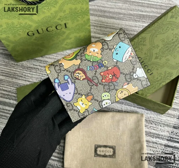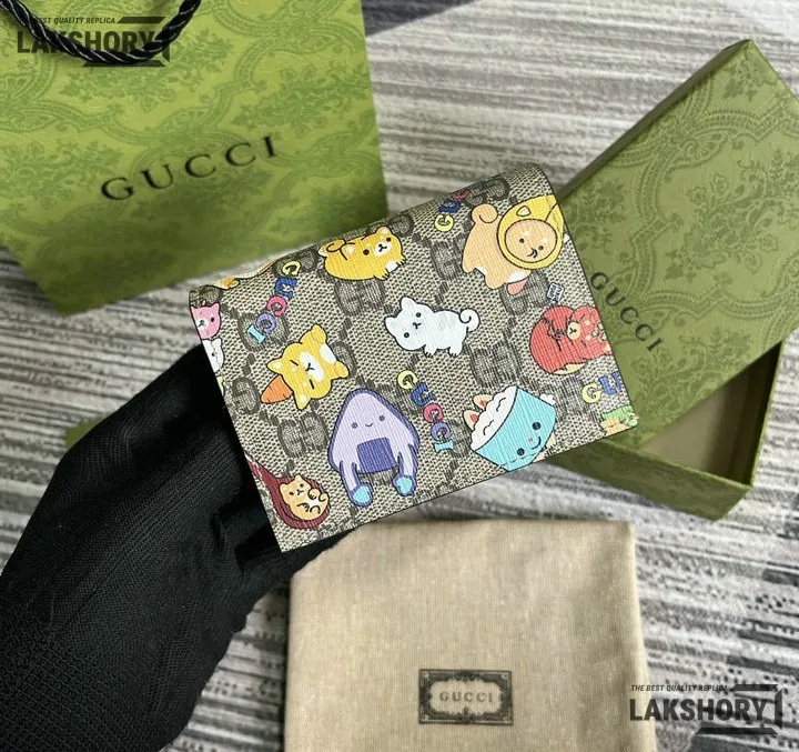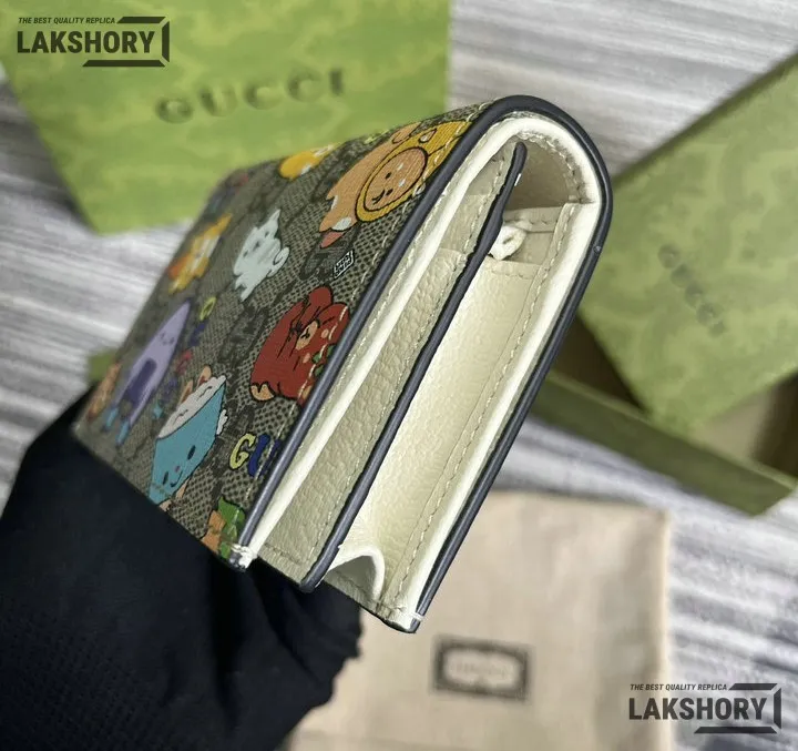 Gucci 1:1 Mirror Replica x Pikarar Kawaii Print Animal Wallet 7CM/2.8IN