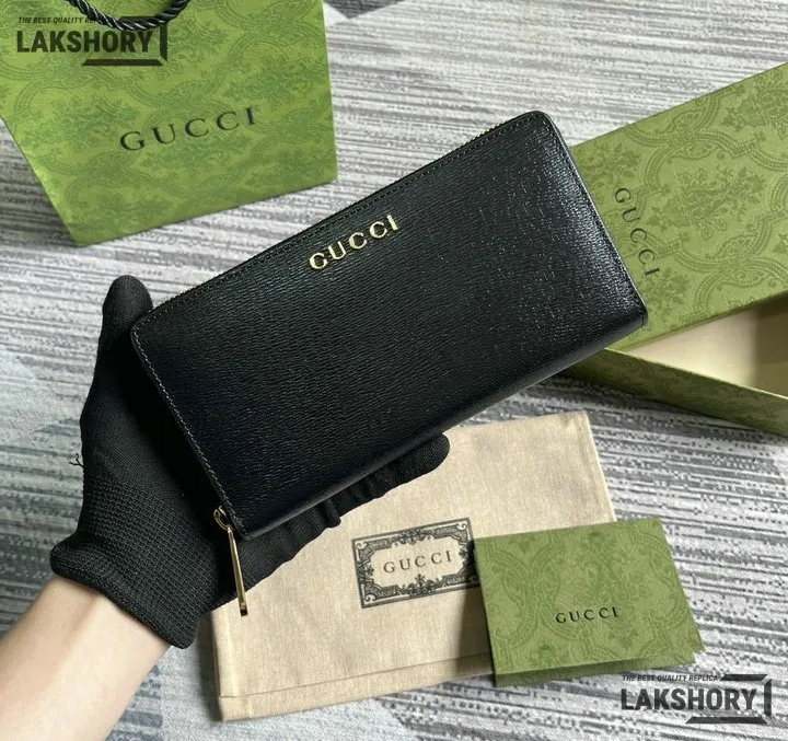 Gucci 1:1 Mirror Replica Zip Around Wallet with Gucci Script 20CM/7.9IN