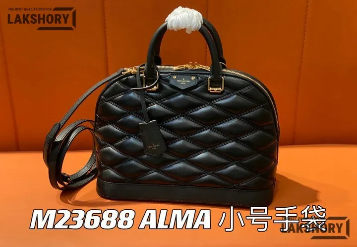 Louis Vuitton 1:1 Mirror Replica Alma PM Leather Malletage Black 32CM/12.6IN