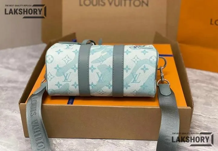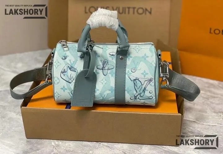 Louis Vuitton 1:1 Mirror Replica Aquagarden Keepall Bandouliere 25 Crystal Blue 25CM/9.8IN