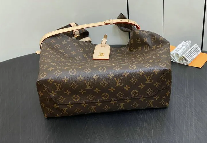 This replica bag uses high-quality leather to emulate the luxurious feel of the original Louis Vuitton Atlantis GM. The hardware, including zippers and clasps, is crafted from sturdy, polished metal, mirroring the finish and weight of the designer version. Every material is chosen to replicate both the look and tactile experience of the genuine bag.