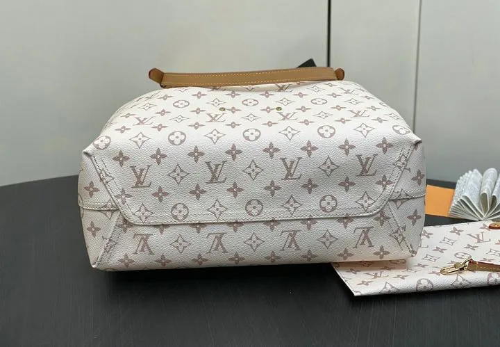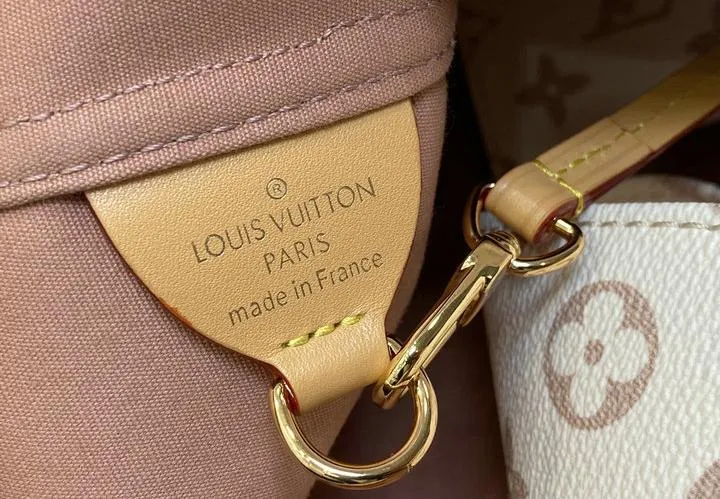 The replica uses premium coated canvas paired with genuine leather trim, mirroring the original Louis Vuitton materials. All hardware, including zippers, clasps, and D-rings, is crafted from high-quality metal with a similar finish to the designer version. These choices ensure durability as well as a luxurious, authentic feel to the touch.