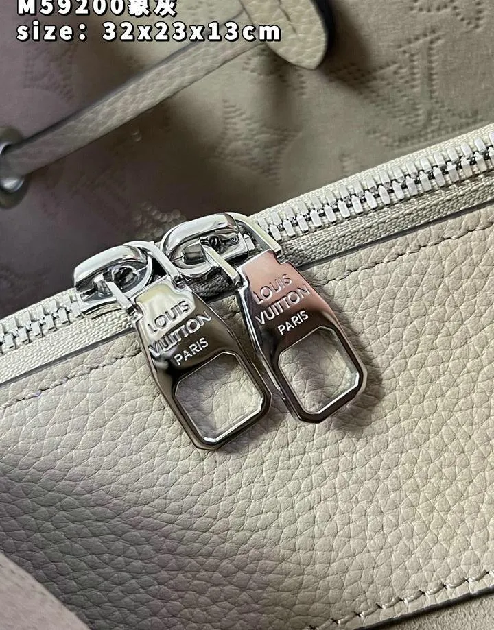 The replica features high-quality cowhide leather, carefully selected to resemble the original Mahina leather’s supple texture and durability. The hardware, including zippers and clasps, is made from sturdy, polished metal with a finish that closely matches Louis Vuitton’s official pieces, ensuring both long-lasting performance and authentic aesthetics.