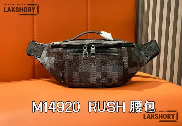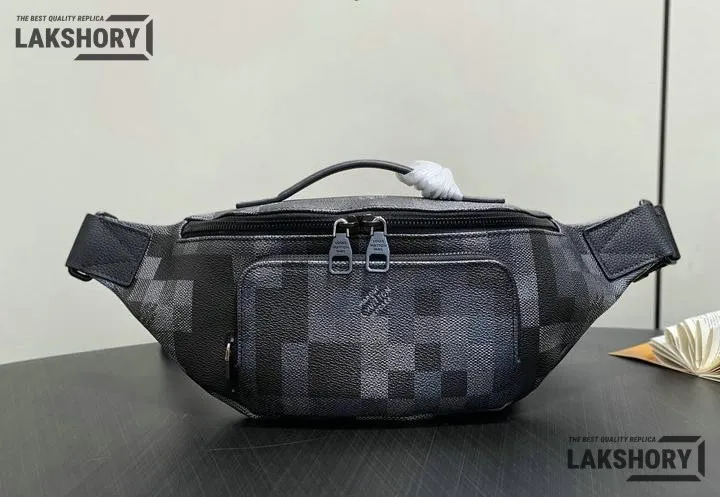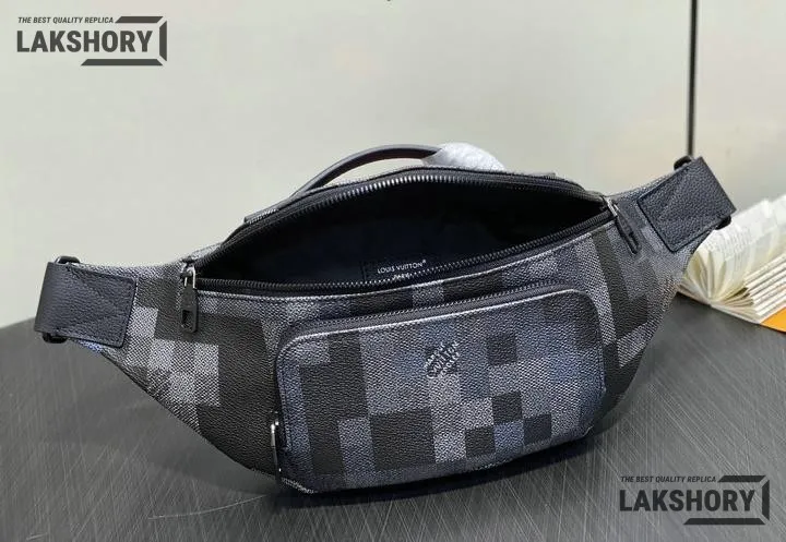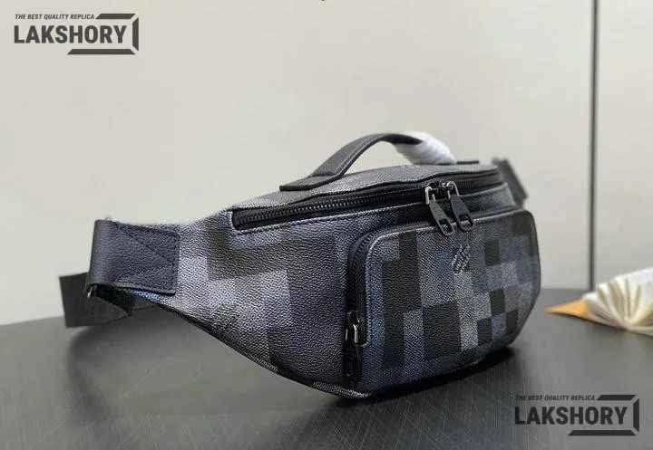 Louis Vuitton 1:1 Mirror Replica Black Damoflage Rush Bumbag 30CM/11.8IN