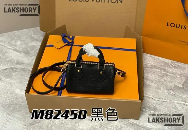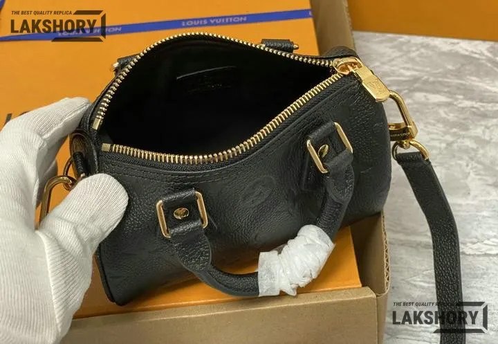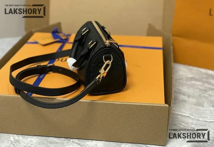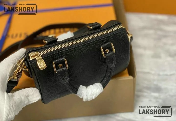 Louis Vuitton 1:1 Mirror Replica Black Monogram Nano Speedy Bag 16CM/6.3IN