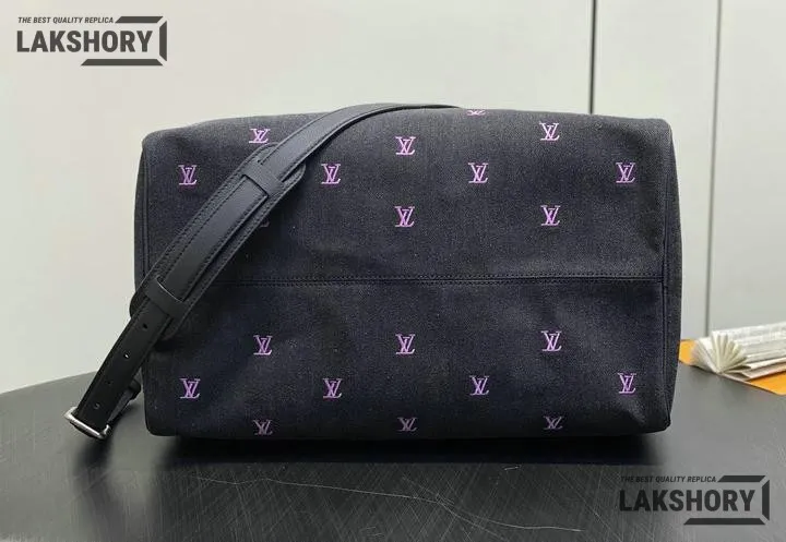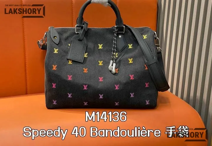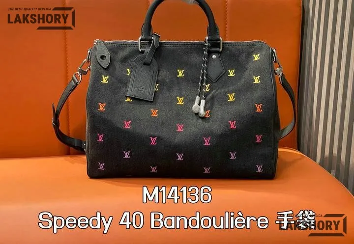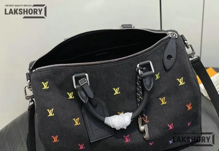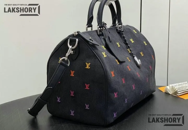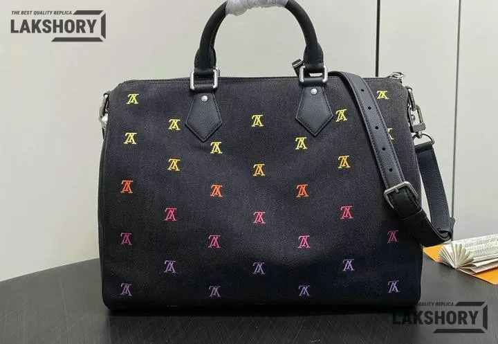 Louis Vuitton 1:1 Mirror Replica Blason Denim Speedy Bandouliere 40 Black Gradient Orange 40CM/15.7IN