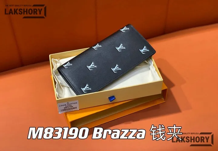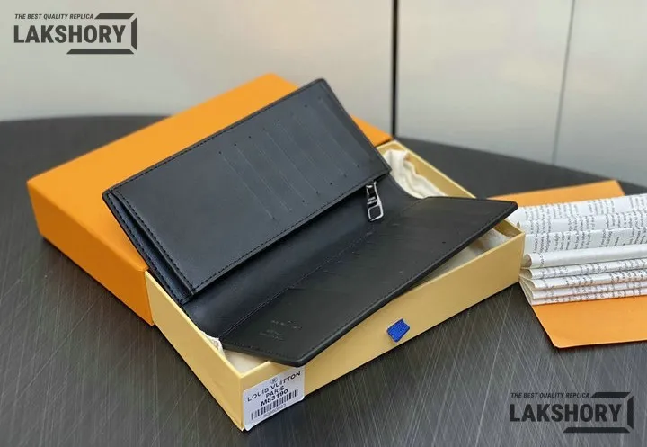 Louis Vuitton 1:1 Mirror Replica Blason Portefeuille Brazza Long Wallet Black 19CM/7.5IN