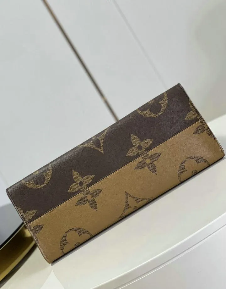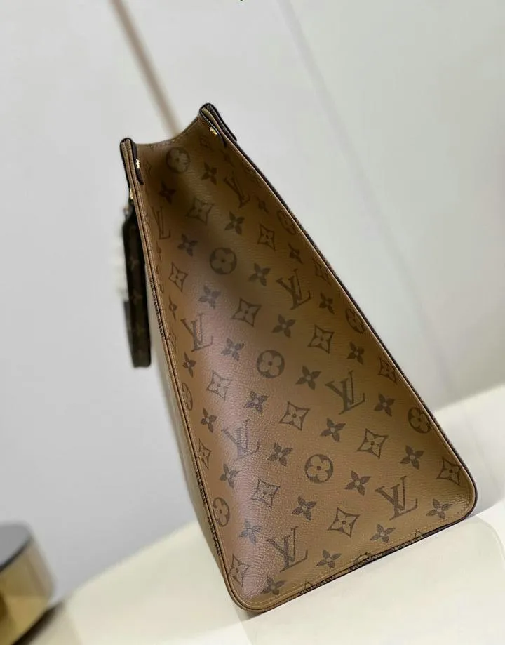 This replica is crafted with meticulous attention to detail, mirroring the authentic Louis Vuitton OnTheGo GM Monogram. From the signature Monogram Giant canvas to the precise stitching and logo placements, every element replicates the original. The overall look and feel are designed to closely match the genuine item, offering a highly convincing appearance.