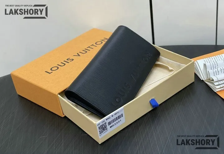 Louis Vuitton 1:1 Mirror Replica Brazza Wallet Black Epi Leather 19CM/7.5IN