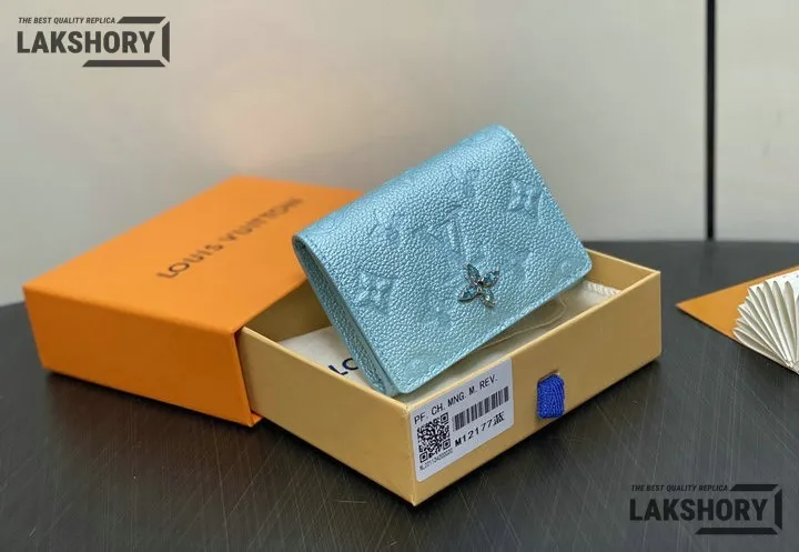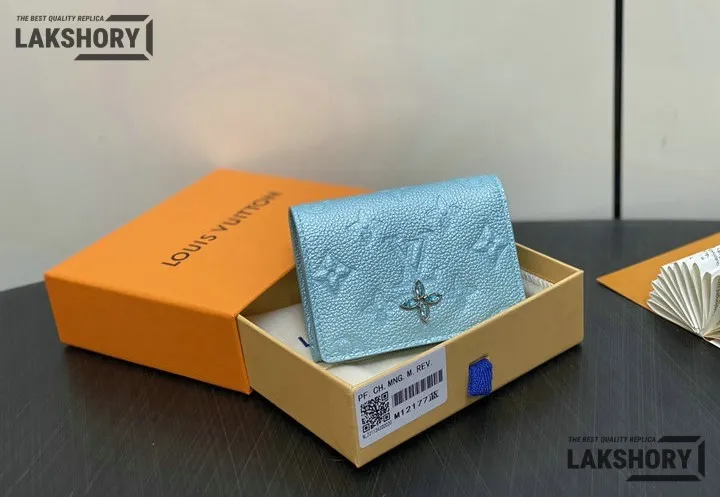 Louis Vuitton 1:1 Mirror Replica Business Card Holder Monogram Empreinte Leather Blue 8CM/3.1IN