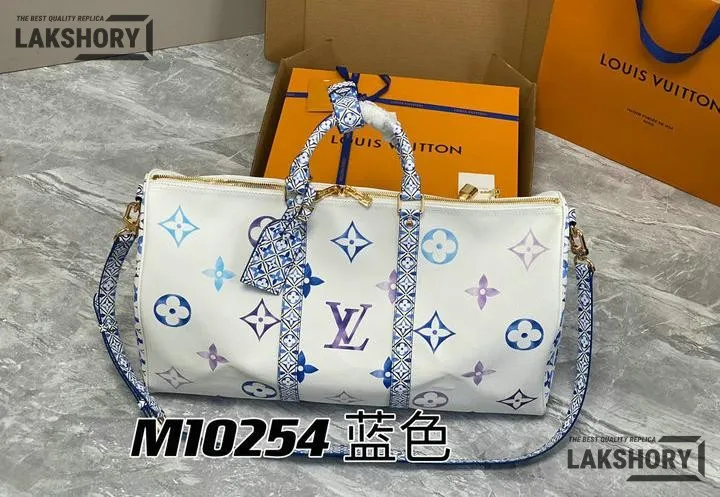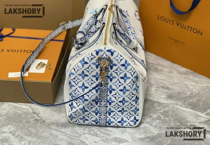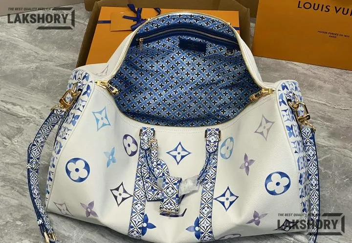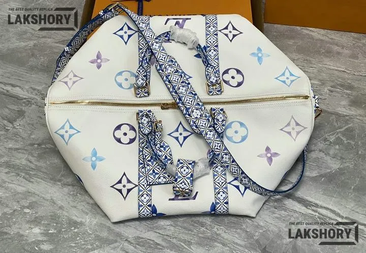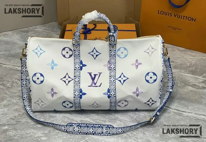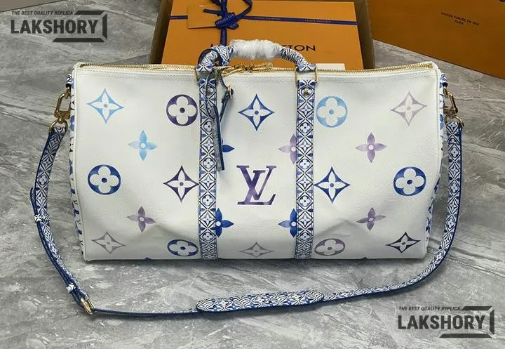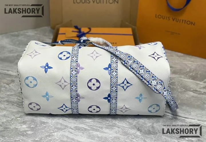 Louis Vuitton 1:1 Mirror Replica By The Pool Keepall 50 White/Blue Watercolor 50CM/19.7IN