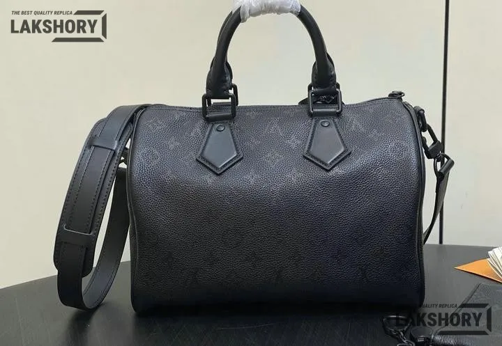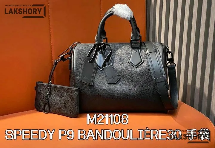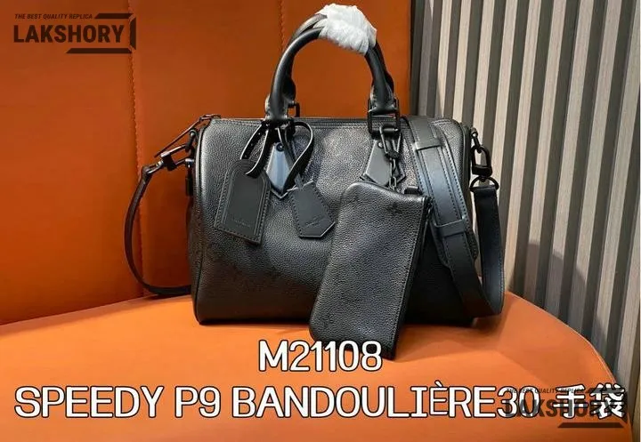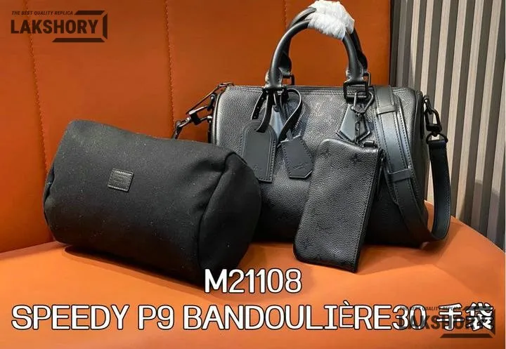 Louis Vuitton 1:1 Mirror Replica Calfskin Speedy P9 Bandouliere 30 Ultra Black 30CM/11.8IN
