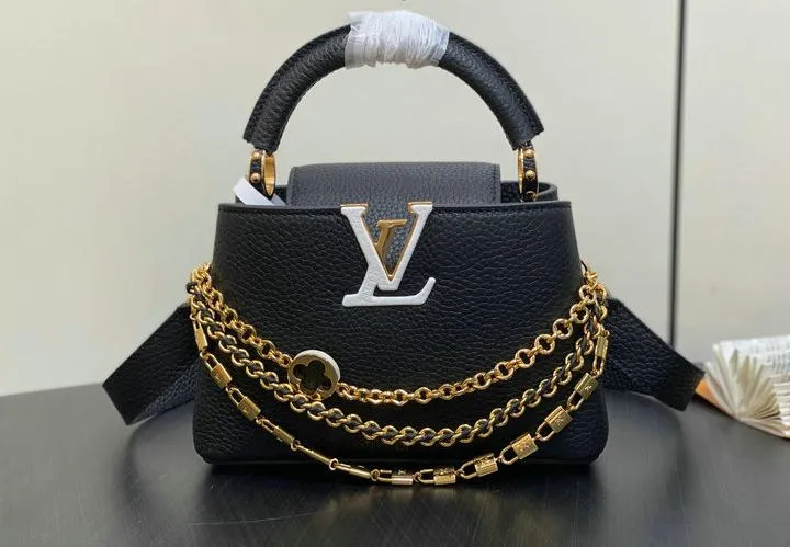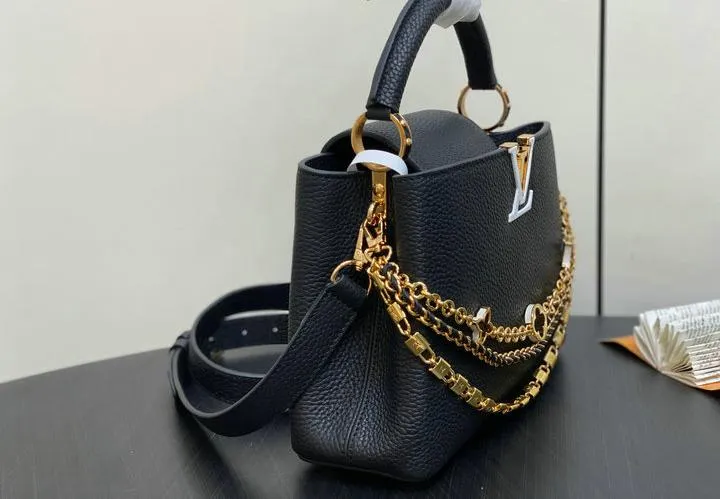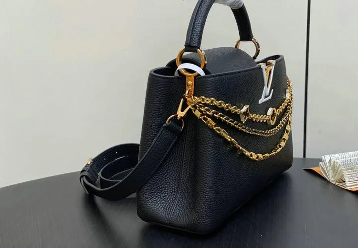 Louis Vuitton 1:1 Mirror Replica Capucines Black Silver Capucines